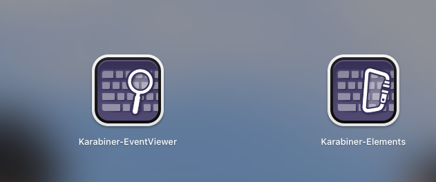 제대로 설치되었다면 Launchpad에서 Karabiner-EventViewer와 Karabiner-Elements 앱이 설치된 것을 볼 수 있다. Karabiner-EventViewer는 현재 눌리는 키가 시스템에서 어떤 키로 인식되고 있는지를 확인할 수 있는 프로그램이고, Karabiner-EventViewer는 키를 매핑해주는 프로그램이다.