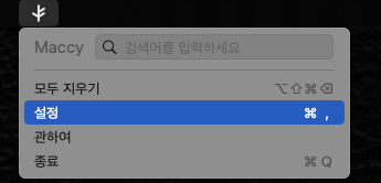 이제 Maccy를 사용해보자. Maccy를 실행하면 맥북 화면 상단에 있는 상단바에 나뭇가지 모양의 아이콘이 뜬다.