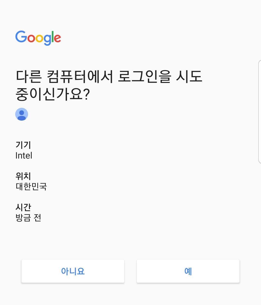 이제 2단계 인증이 활성화되었다. 앞으로 구글 계정에 로그인을 시도하면 등록한 기기로 확인 메시지가 날라온다. 이 메시지를 통해 본인이 승인을 해줘야 구글 계정 로그인이 된다.