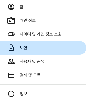 만약 비밀번호도 유출되었다고 리포트되었다면 추가로 보안장치를 마련해야한다. 적어도 2단계 인증은 설정을 해둬야 안심할 수 있다. 2단계 인증을 설정하기 위해 계정관리 혹은 https://myaccount.google.com/ 페이지로 들어간다.