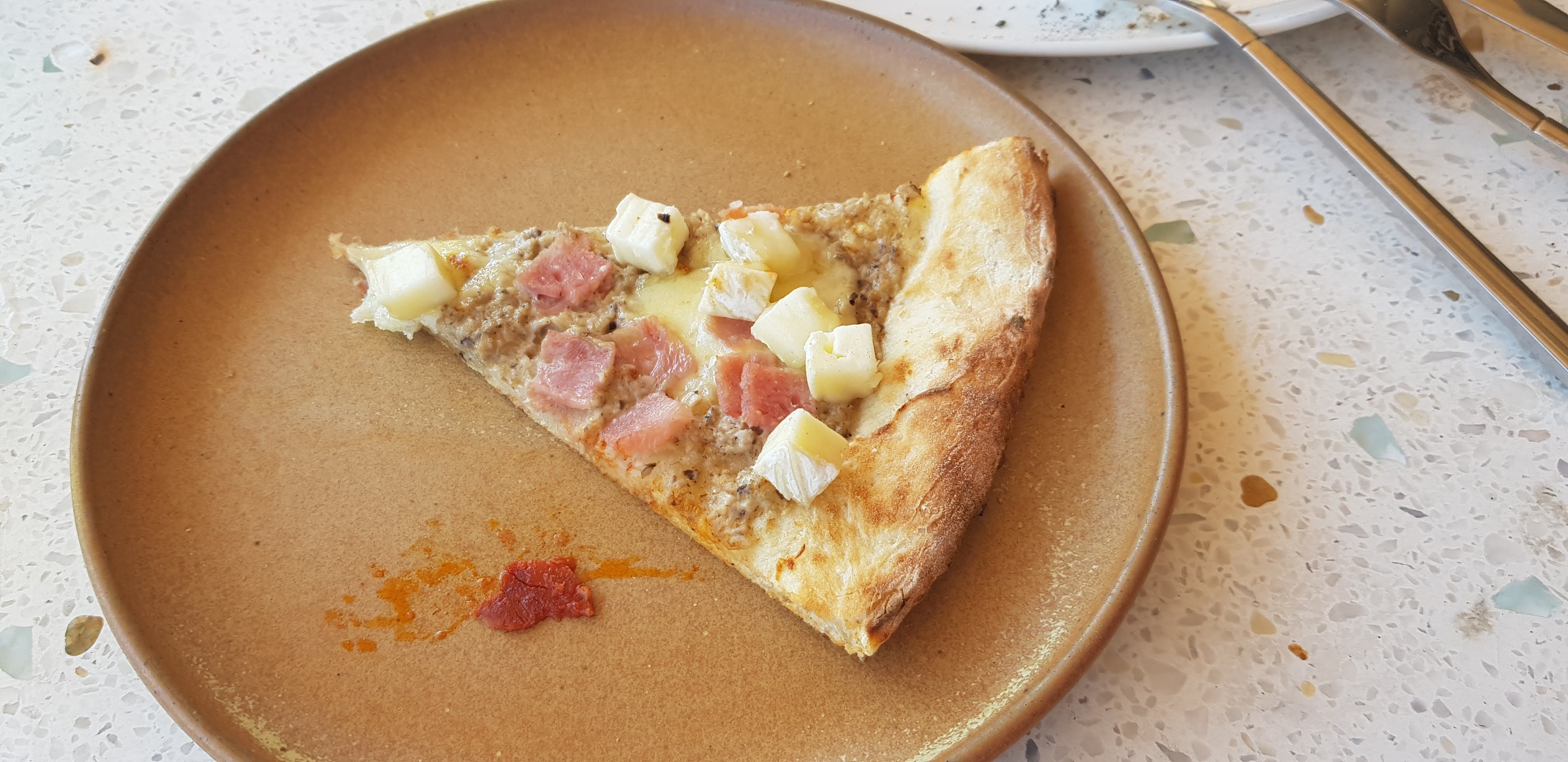 하얀색 치즈가 제법 짰는데요. 치즈보다는 버섯의 향이 정말 좋았습니다. 이 피자에는 핫소스를 뿌려먹지 않는 것을 추천합니다.