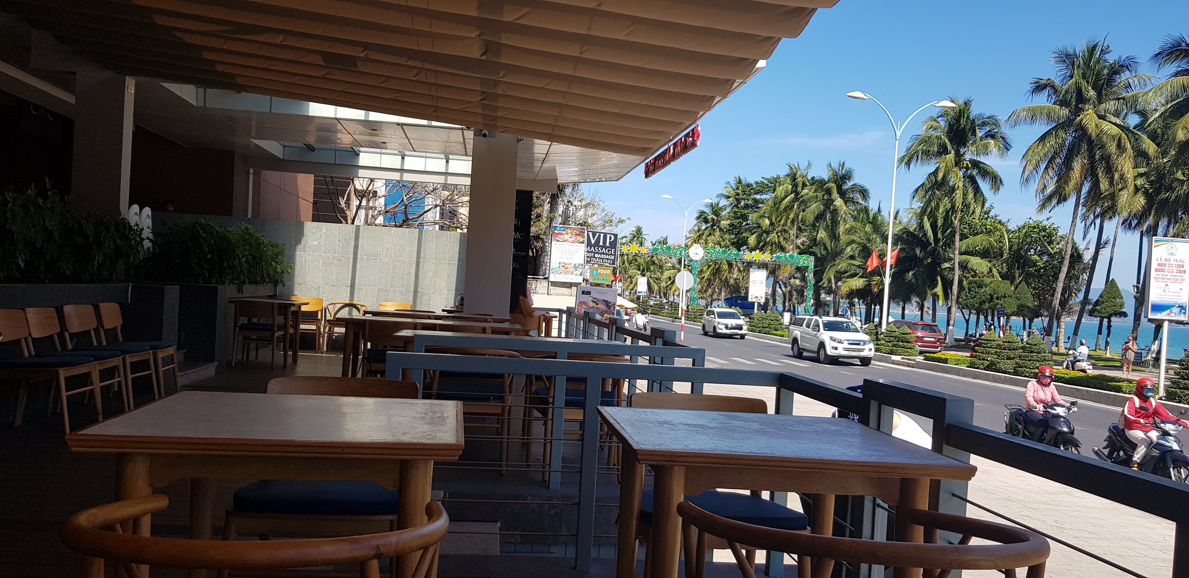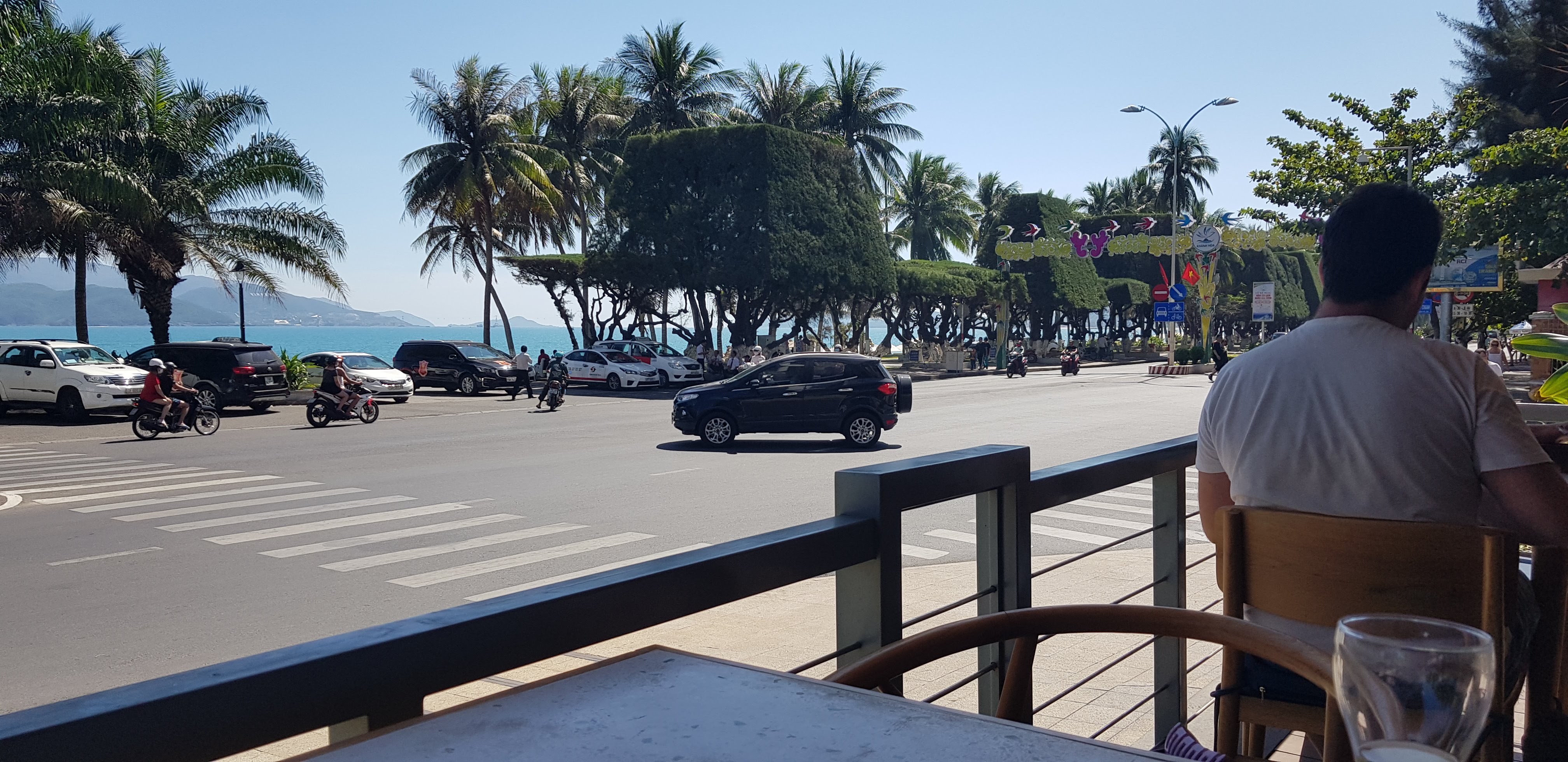 <Pizza 4P's Nha Trang>의 야외 테이블에서 식사를 했는데요. 해변을 따라 어마어마하게 많은 차량이 돌아다녔습니다.. 그 사이를 물처럼 오토바이들이 스며들어 다녔는데요. 정말 복잡합니다. ㅋㅋ