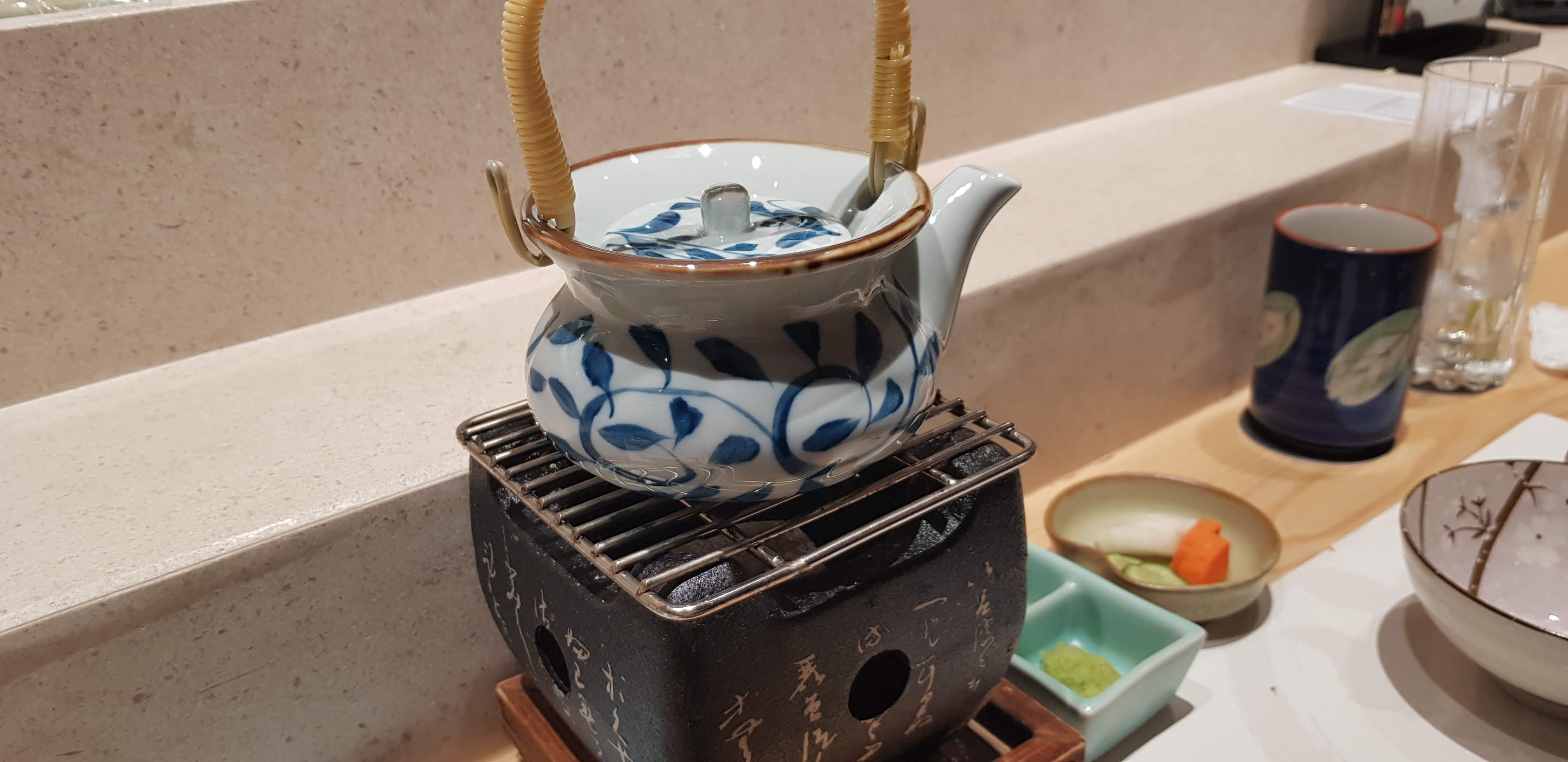 셰프와 이야기를 하면서 음식을 먹을 수 있는 자리로 앉았습니다. 일본식의 핵심은 역시 정갈함이죠. ㅎㅎ 이 사진을 보니 생각난건데 일본은 젓가락을 이렇게 가로로 놓습니다. 한국은 세로로 놓죠. 사소한 것이지만 문화가 다르다는게 느껴집니다.