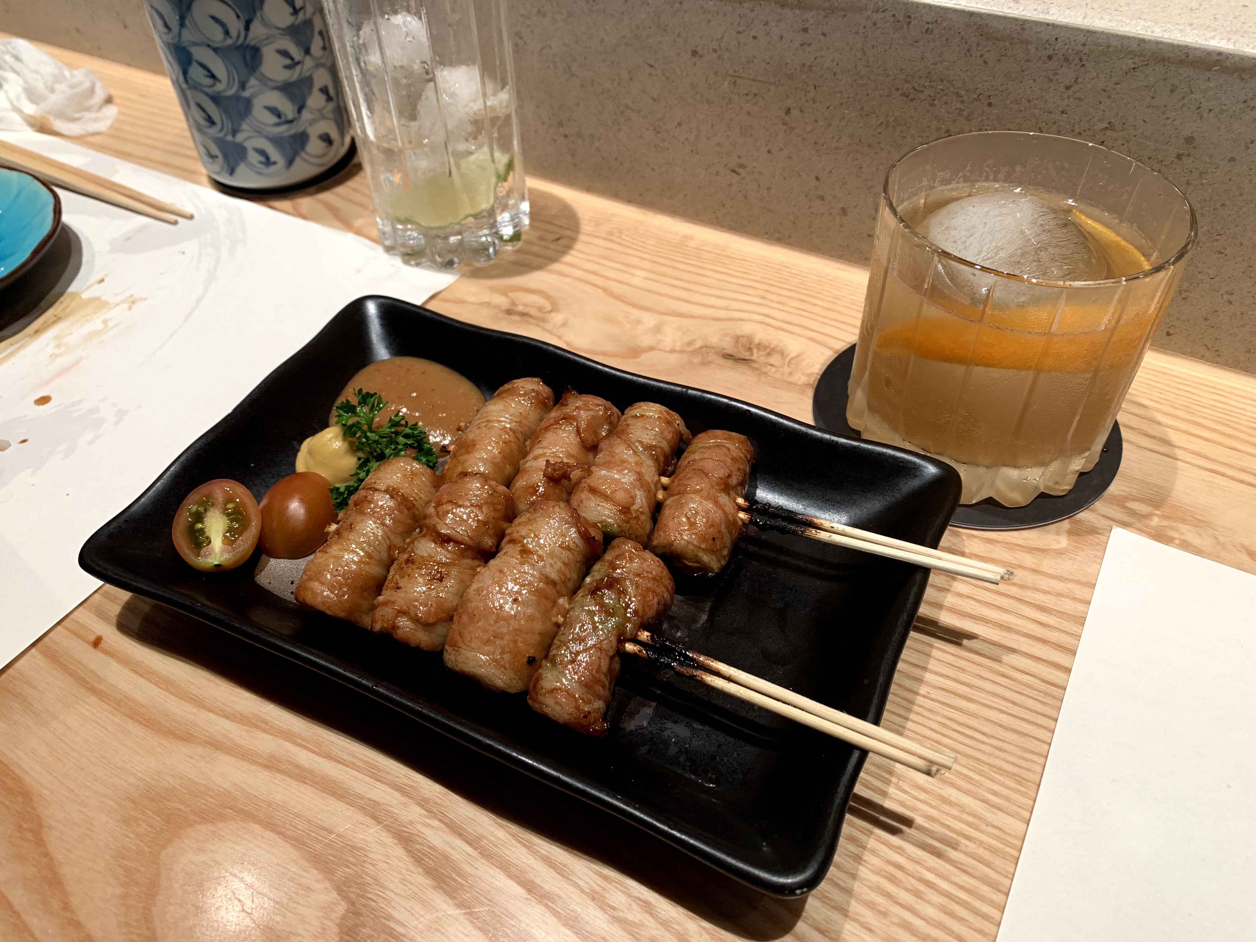 밥만 먹고 일어나기는 아쉬워서 하이볼과 꼬치 요리를 추가로 주문했습니다. 앉아서 꼬치 요리를 맛보면서 술을 한잔하고 일어났습니다. 셰프는 집에 갔지만 남아있는 직원들에게 이것저것 물어보면서 꼬치 요리를 먹었습니다. (주변에 관광할데라던지..)