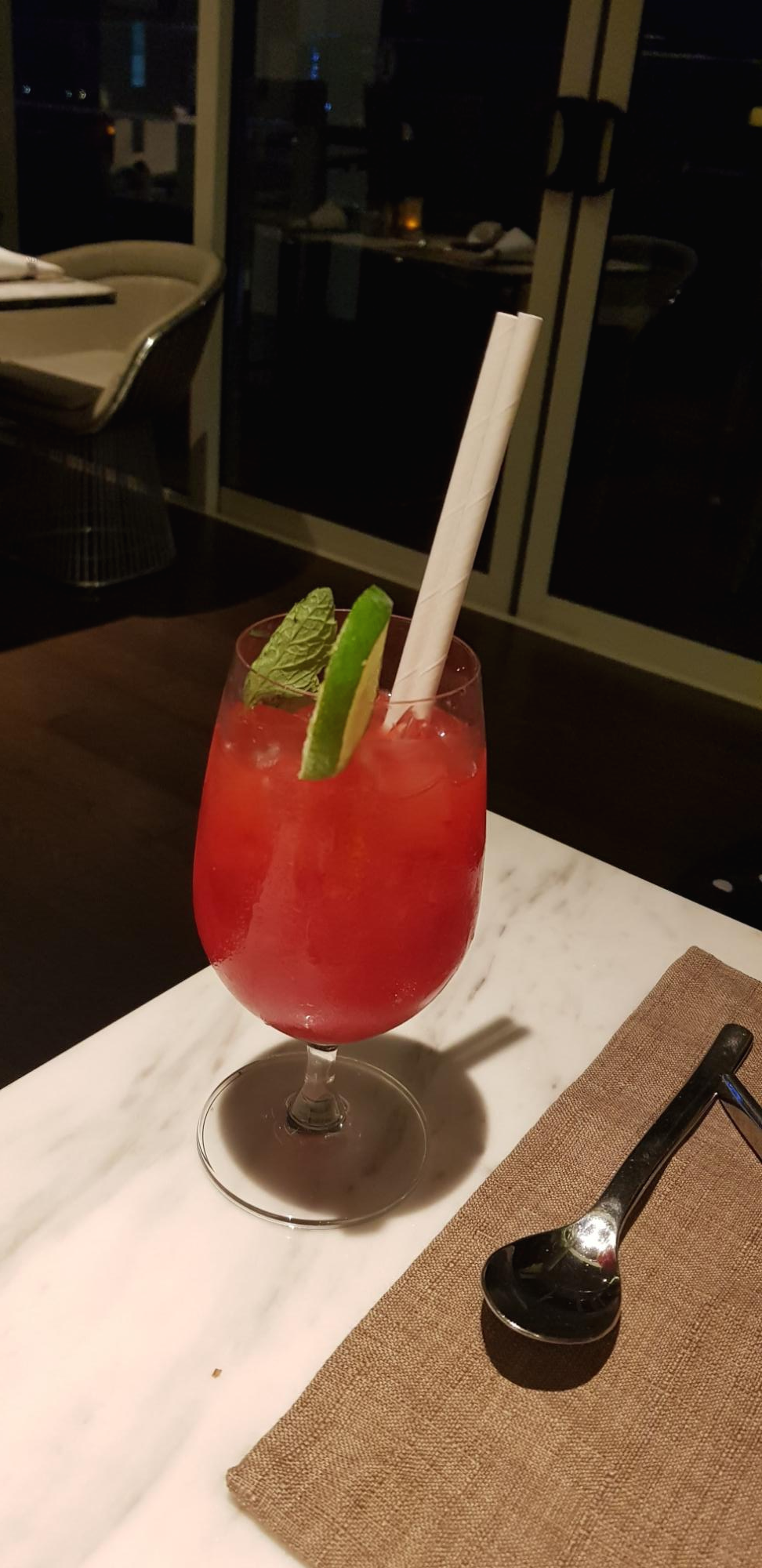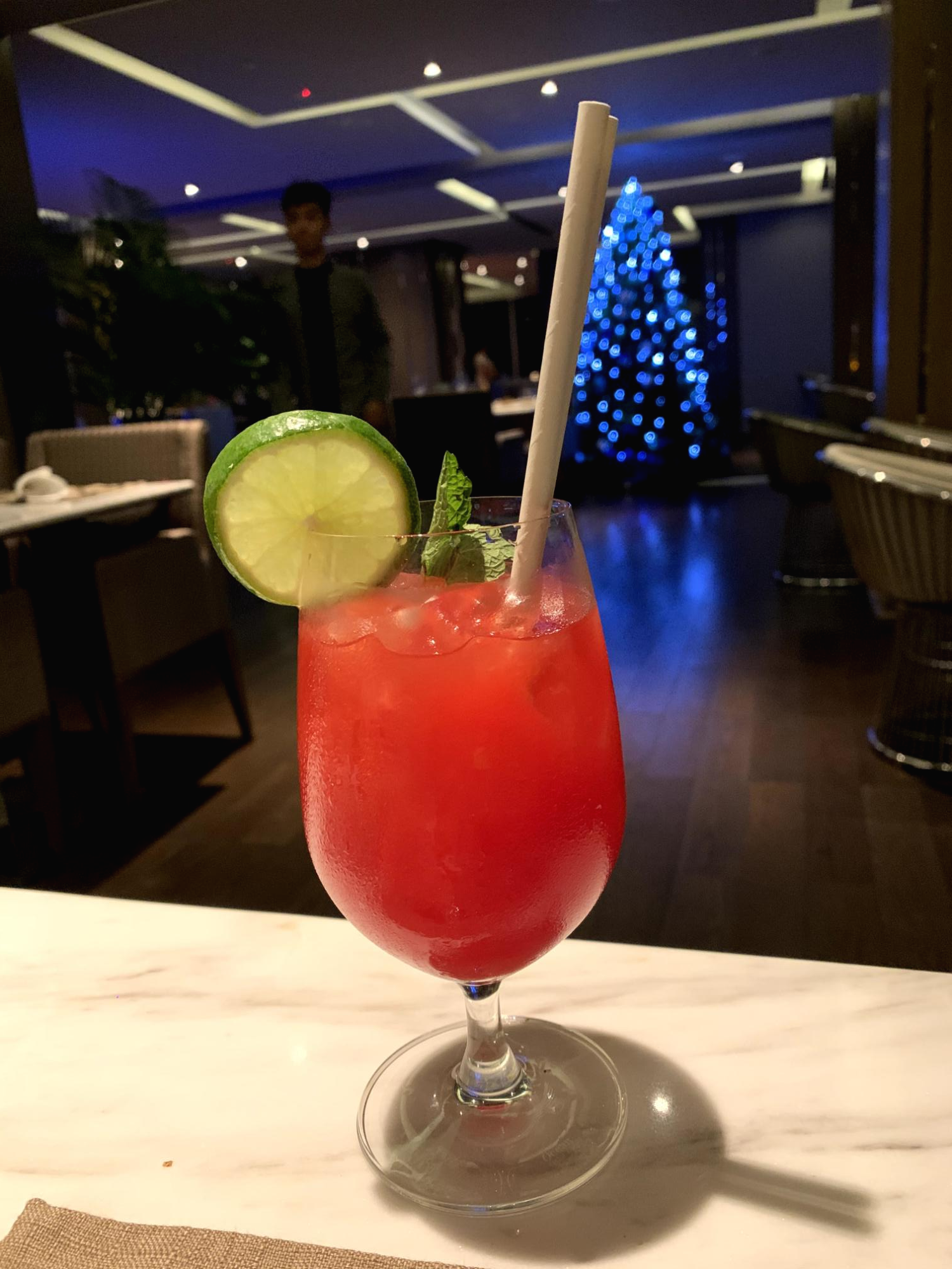 칵테일의 색과 클럽룸 라운지의 조명 색이 참 잘어울어졌습니다.