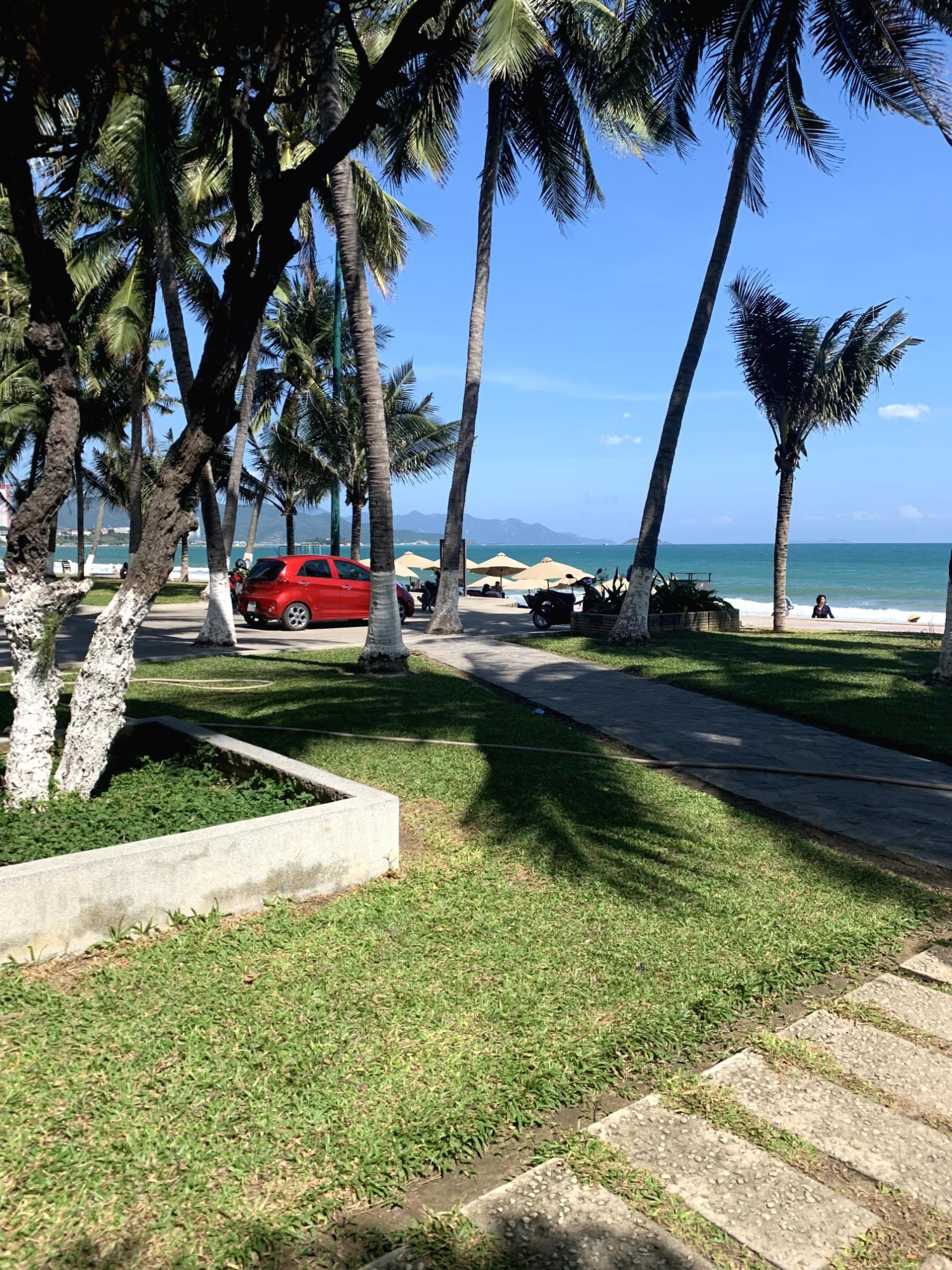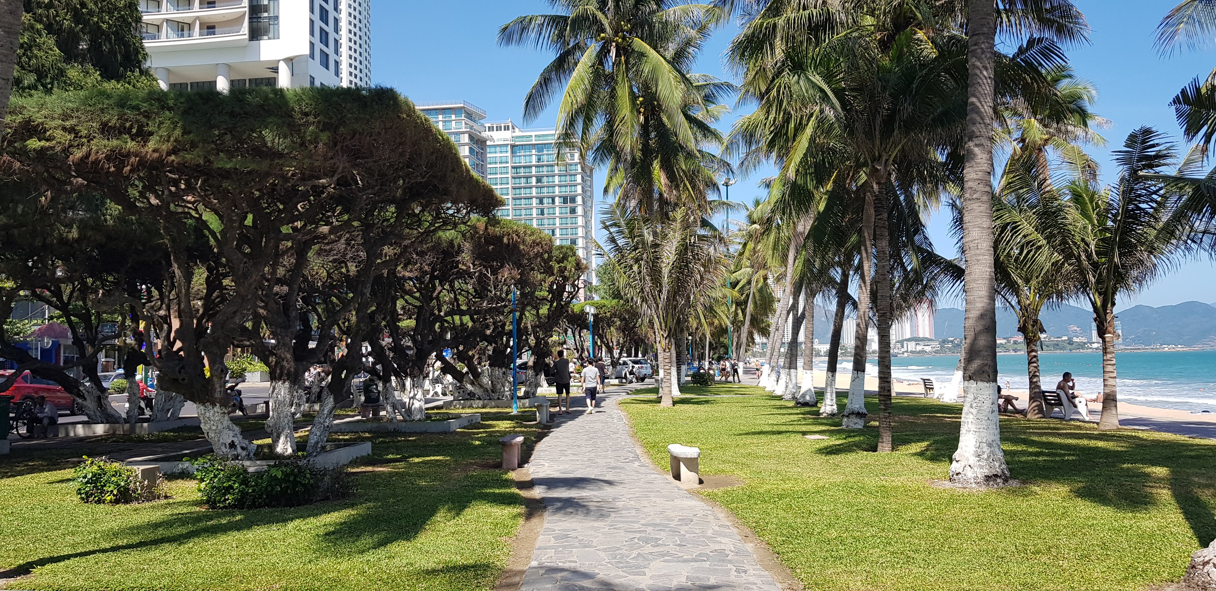 호텔이 밀집해 있는 곳이라 그런지 해변 공원이 깔끔하게 잘 조성되어 있습니다. 산책하기 좋게 길도 닦여져 있고, 햇볕을 막아주는 야자수도 잘 심어져 있습니다.