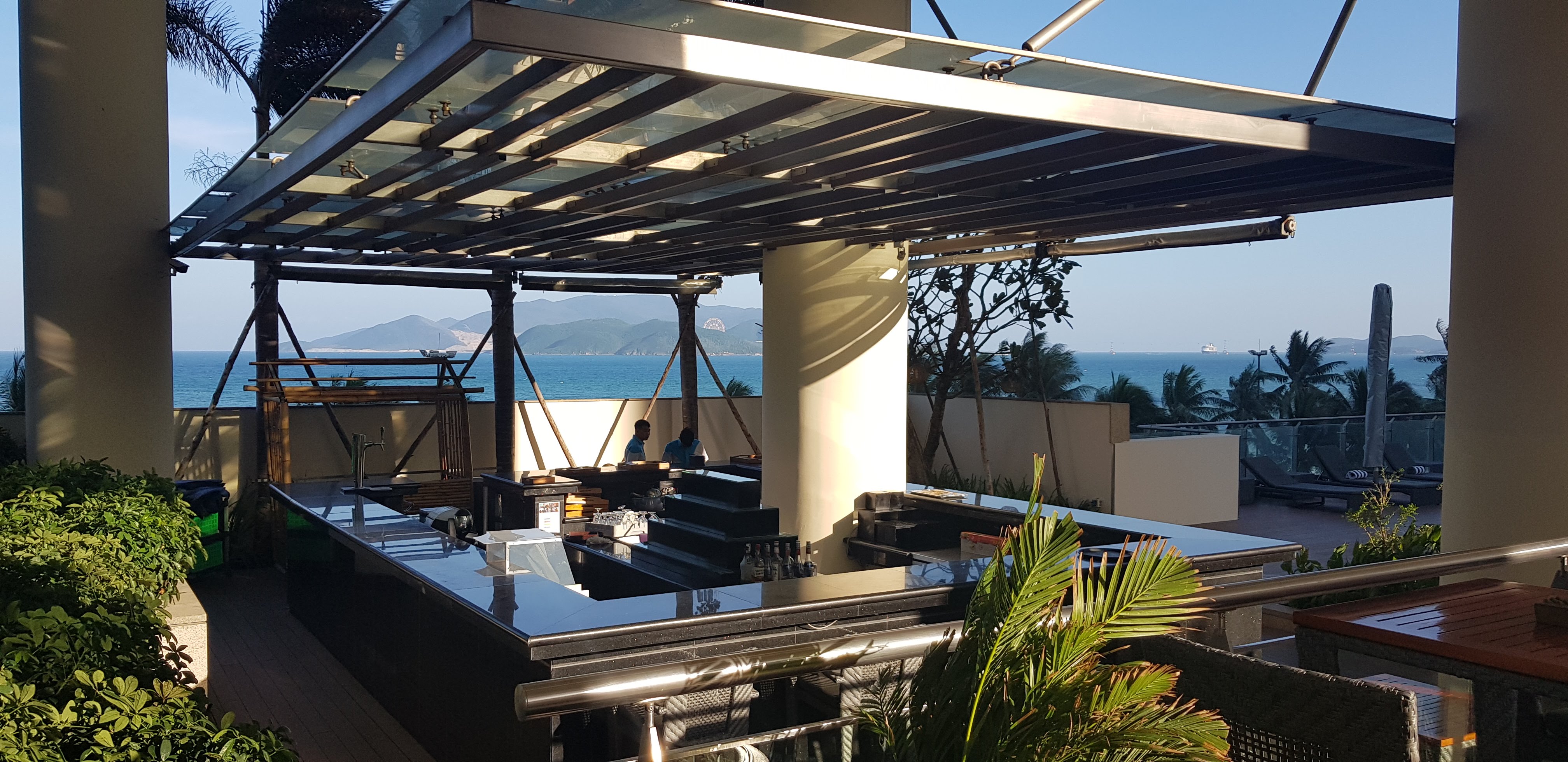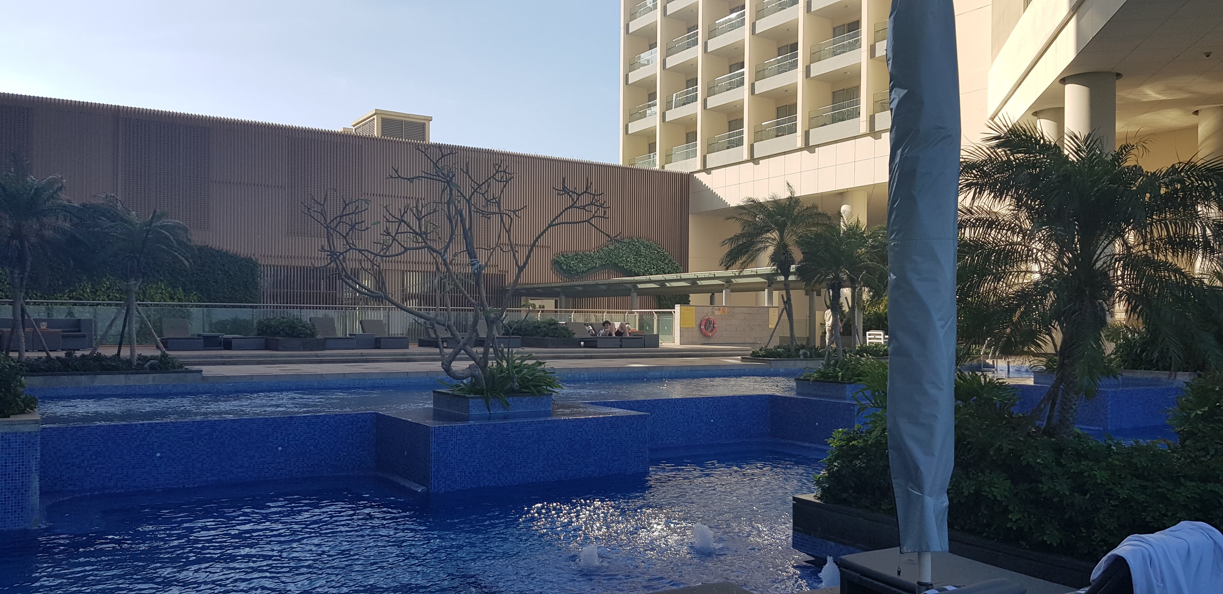 호텔 2층에 있는 수영장으로 올라왔습니다. 바람이 너무 세게 불어서 그런지 수영장에도 사람이 별로 없었습니다. 풀 바에도 손님은 별로 없었구요;;