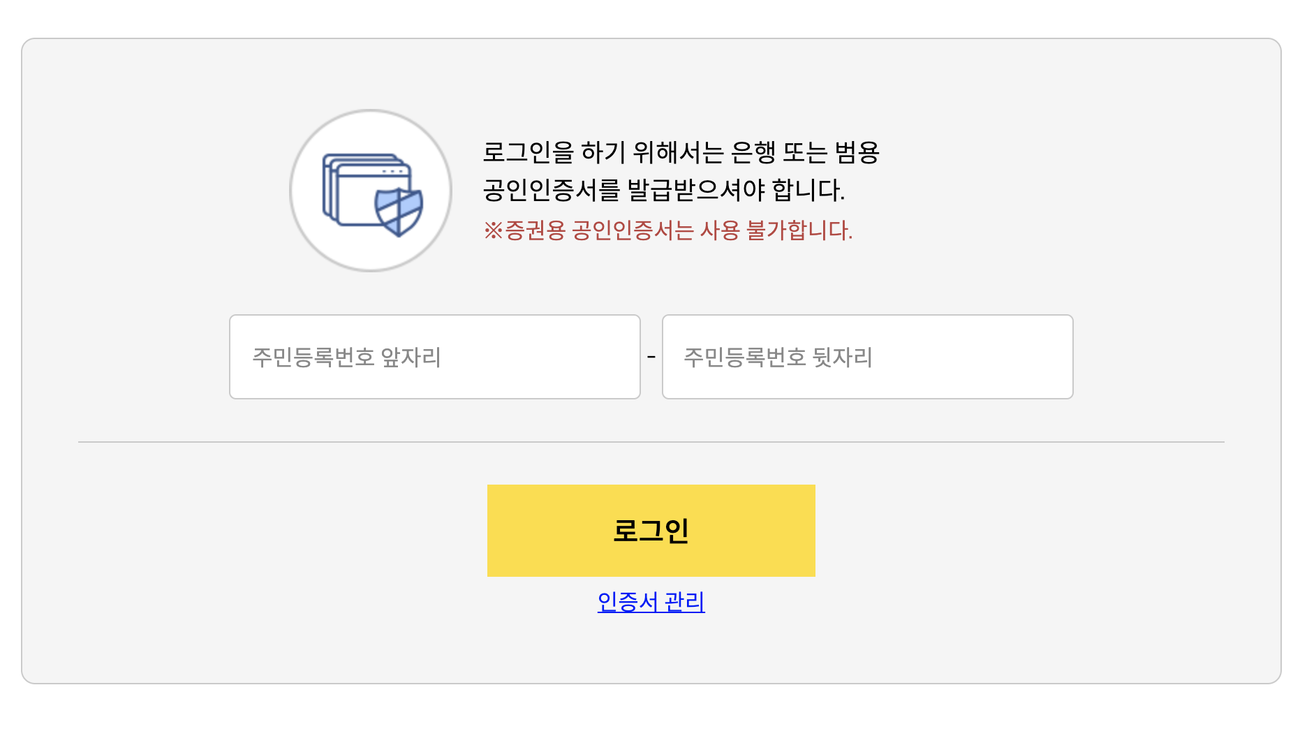 공인인증서를 통해 본인 확인을 해야 청약통장 가입기간 정보를 확인할 수 있습니다. 휴대폰에 설치되어 있는 공인인증서를 이용해 로그인을 해줍니다.