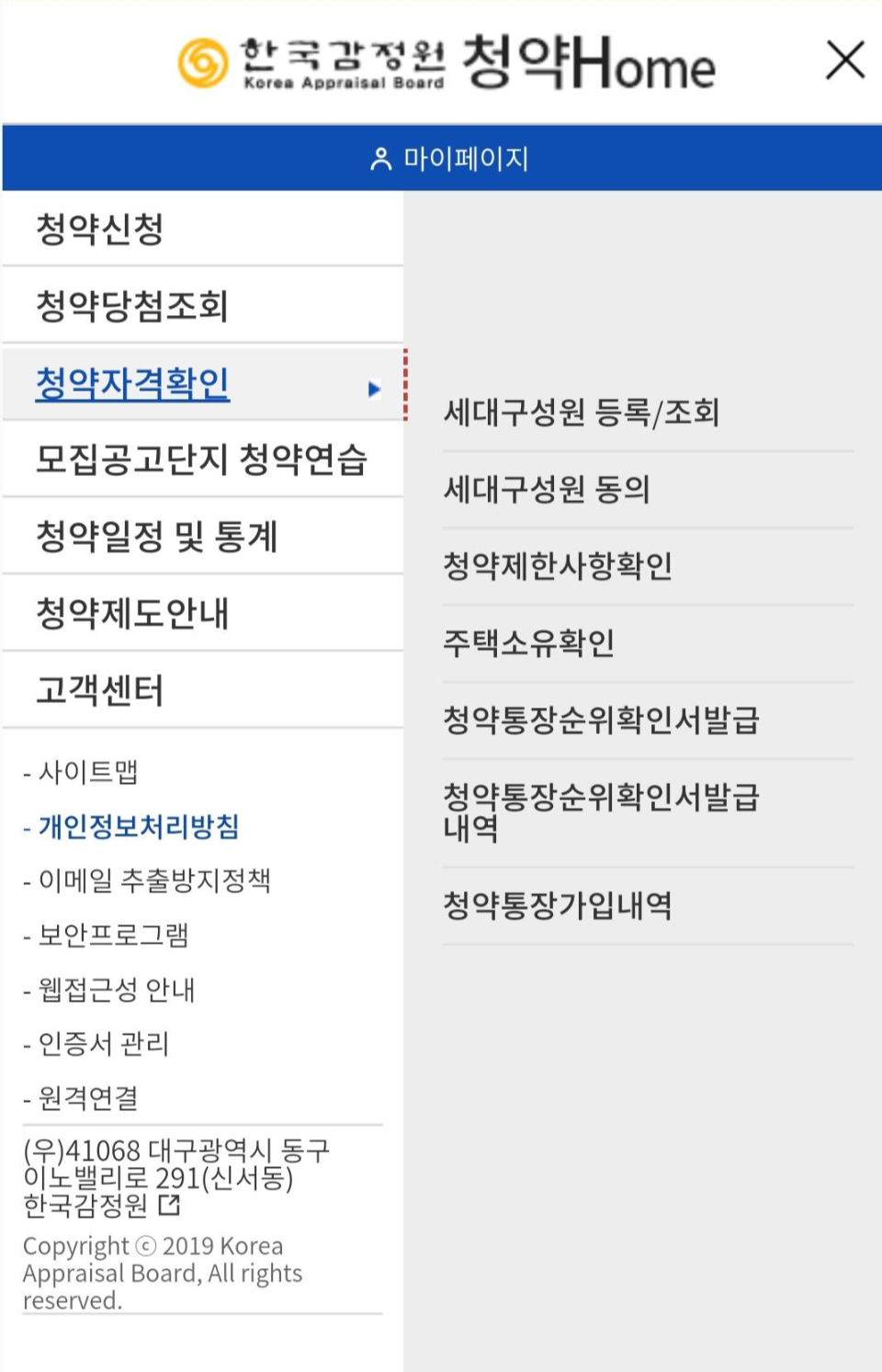 이런 메뉴가 나오는데요. '청약자격확인' 메뉴를 선택해줍니다.