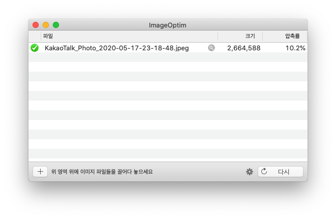 ImageOptim의 경우 기존 파일에 덮어쓰기 때문에 EXIF 정보를 보존하면서 새로 EXIF 정보를 날린 이미지를 만들고 싶다면 기존 이미지를 다른 경로에 백업해두시고 작업을 하셔야합니다.