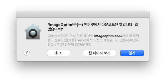 앱 스토어를 통해서 설치한 파일이 아니라서 이런 경고가 나오는데요. 일단 [열기]를 눌러서 진행합니다.