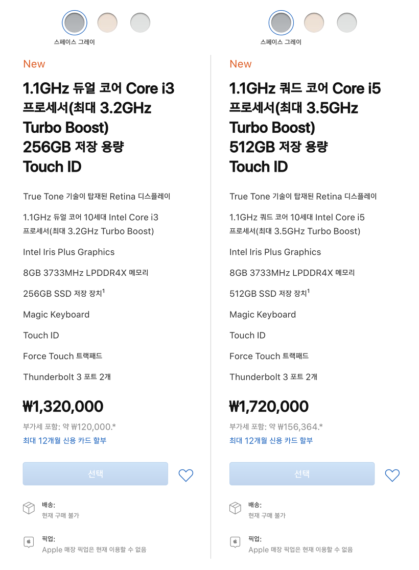 가장 매력적인건 역시나 가격입니다. 132만원의 가격에 맥북 제품을 만나볼 수 있는 기회가 생겼는데요. 애플 생태계로 첫 발을 딛고 싶으신 분들은 한번쯤 고려해볼만한 제품이라고 생각합니다. 색상은 실버/스페이스 그레이/골드 3가지 색상이 출시되었습니다. (링크 : 맥북에어 구입)