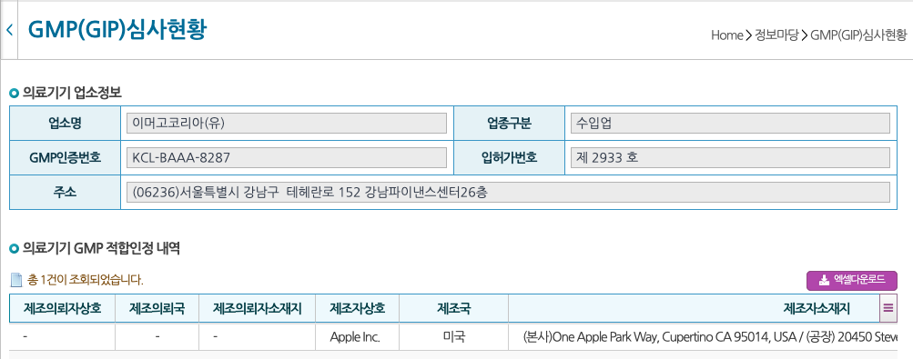애플은 최근 식약처의 의료기기 GMP 적합 인증을 받은 것으로 알려졌습니다. 의료기기 GMP 적합 인증은 의료기기 제조업체가 의료기기에 대한 설계, 개발, 제조, 판매 후 관리 등 전 과정을 체계적으로 관리하는 품질 시스템이 유지되고 이행되는지 평가하는 제도입니다.