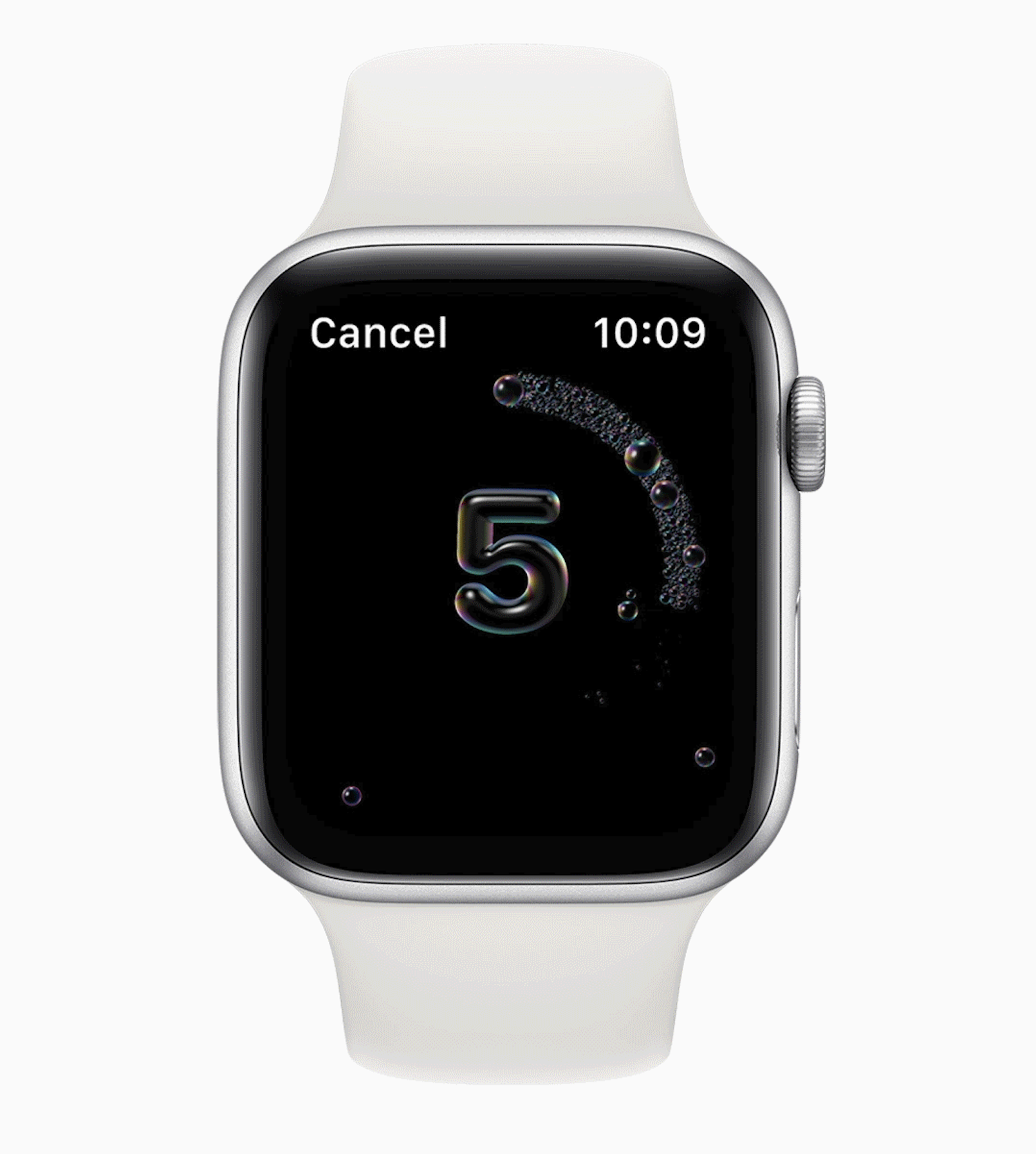 자동 손 씻기 감지 기능이 추가되었습니다. 애플워치에 있는 동작 센서, 마이크, 온디바이스 머신러닝을 사용해서 손을 씻는 움직임과 소리를 자동으로 감지합니다. 사용자가 손을 씻는 것 같으면 20초 타이머가 작동되며, 손 씻기가 너무 빨리 끝나면 더 씻으라고 안내를 합니다.