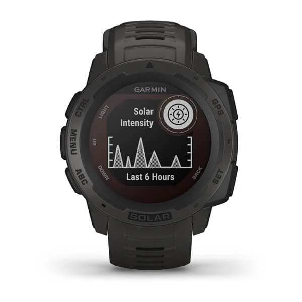 'Garmin Instinct Solar'는 'Garmin Instinct' 제품에 태양광 충전 기능을 추가한 스마트워치 제품입니다. 태양광 충전 기능을 추가하여 스마트 워치 기능을 사용할 경우 24일 동안 사용할 수 있으며, 햇빛이 충분한 지역에 있는 경우에는 사용시간이 50일까지 늘어납니다.