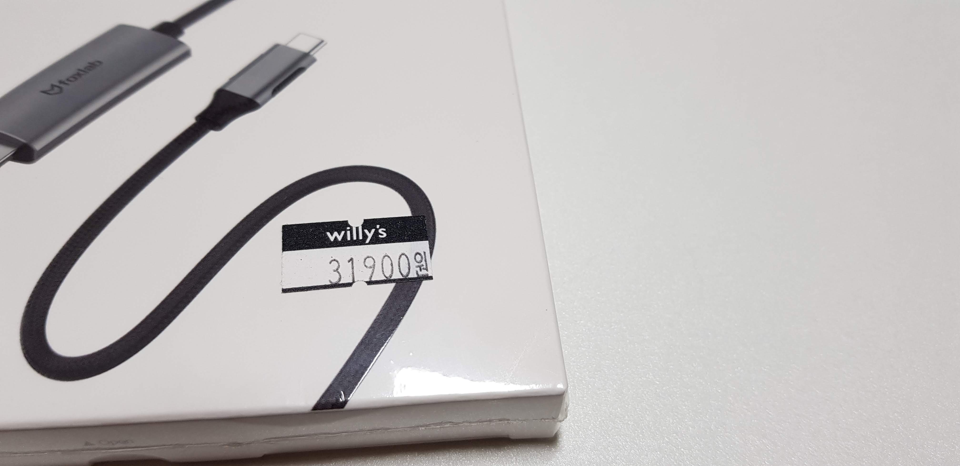 'Foxlab'의 'usb-c to hdmi' 케이블이었습니다. 사실 윌리스에 가기 전에 윌리스 온라인 스토어에서 검색해보고 갔는데요. 구석에 숨겨져 있었습니다.