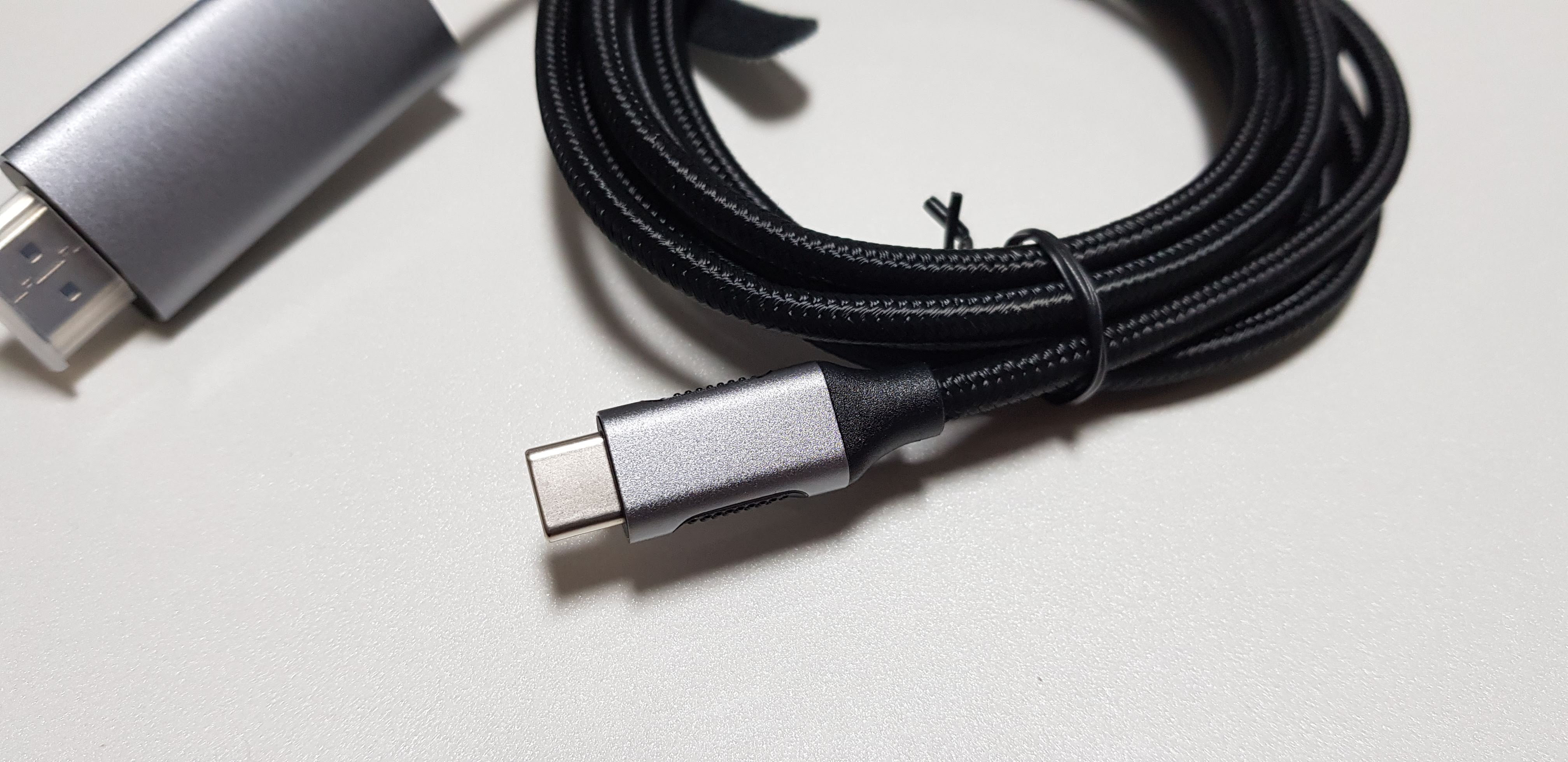 한 쪽은 USB-C 포트고 다른 한쪽은 HDMI가 맞네요. 색상은 스페이스 그레이로 제가 가지고 있는 맥북의 색상과 동일합니다. 뭐 맥북과 함께 들고 다닐 것은 아니지만 그래도 깔맞춤은 해야죠.