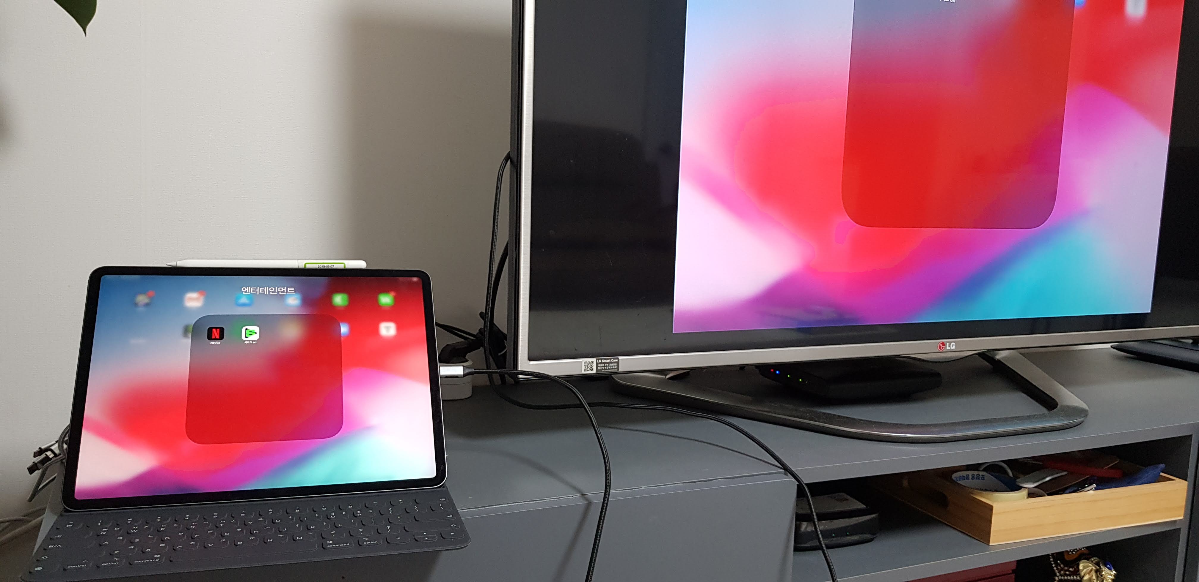 우선 가지고 있는 아이패드 프로와 LG TV를 미러링해봤습니다. 정상 동작하네요.