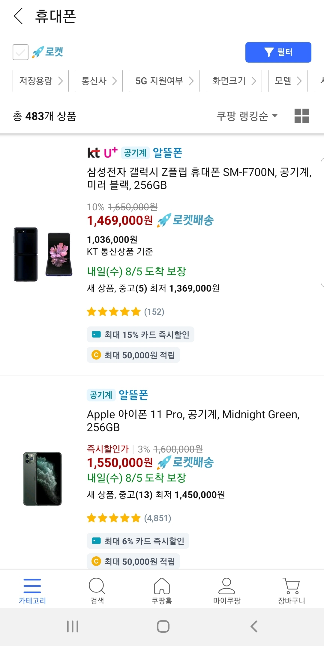 그 동안 쿠팡은 애플의 아이폰이나 삼성의 갤럭시 시리즈가 출시할 때마다 쿠팡 할인을 제공하면서 히트를 쳐오고 있었습니다. 일단 출시되면 자급제 폰을 쿠팡에서 좋은 가격에 구입하고, 알뜰폰 통신사에서 저렴한 LTE 요금제로 개통해 사용했었습니다.