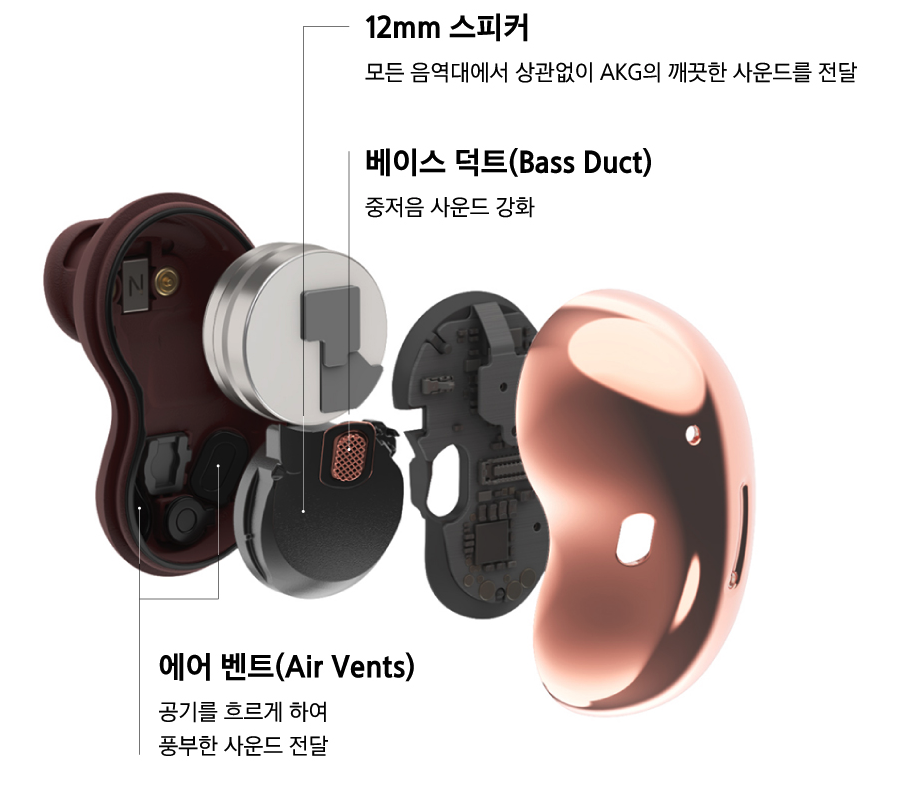 이번에 출시된 '갤럭시 버즈 라이브'에서도 AKG의 음향 기술이 잘 녹아들어 사용자에게 프리미엄 사운드 경험을 제공합니다.