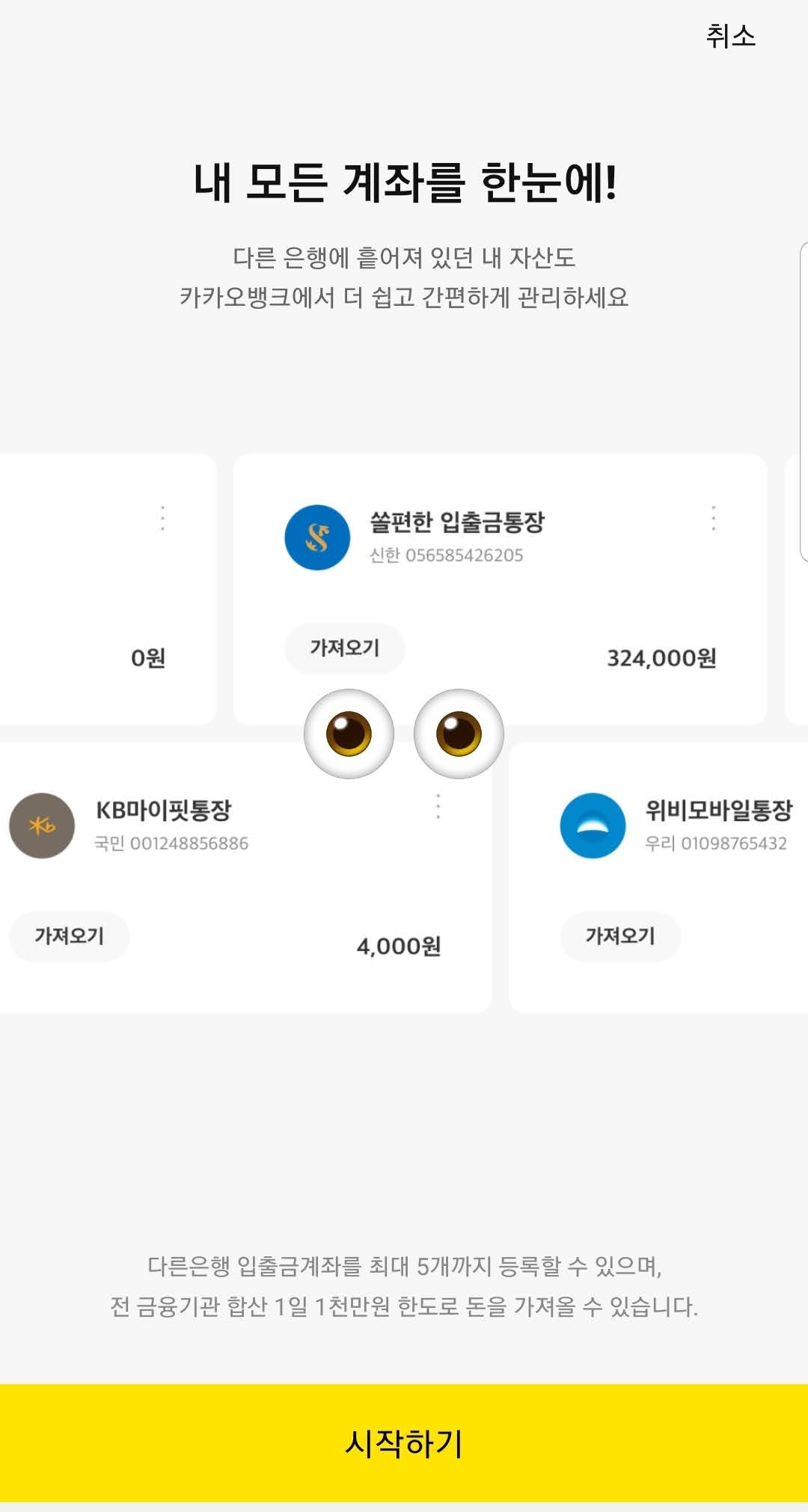 카카오 뱅크 앱을 실행하고 오픈뱅킹 등록을 해보겠습니다