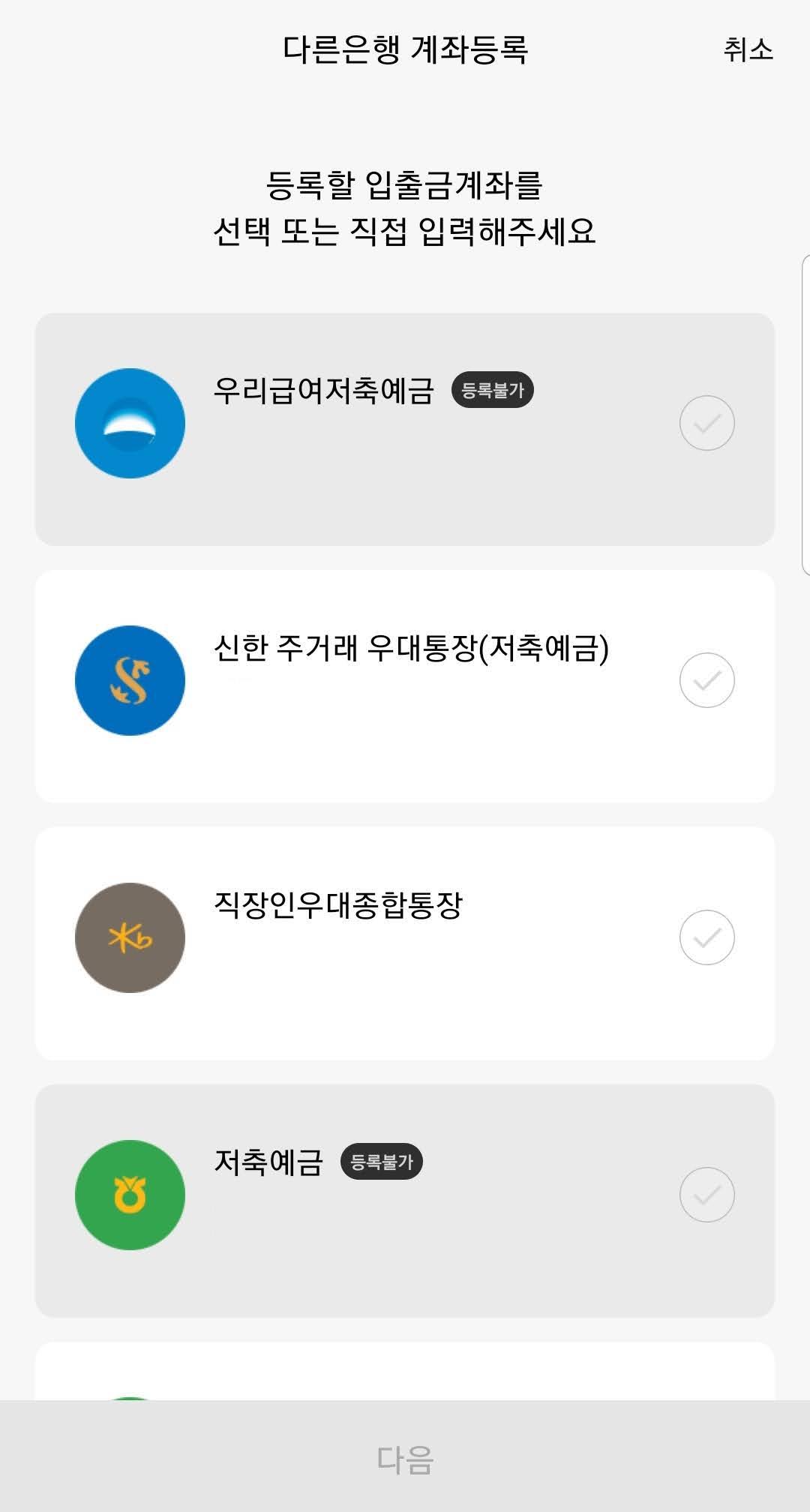 '다른은행 계좌등록'을 선택해서 오픈뱅킹 등록을 하겠습니다.