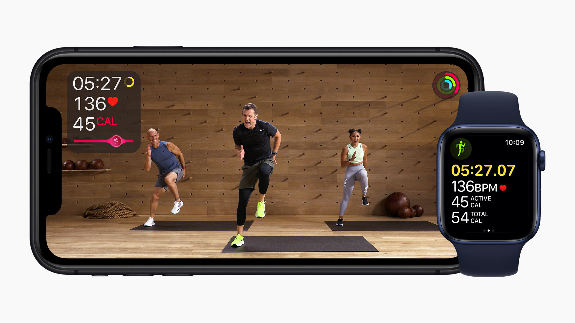 '피트니스+'에는 요가, 사이클링, 댄스, 러닝머신 등 총 10가지 운동을 지원하며, 개인화된 운동들을 추천해줍니다. 트레이너들이 추천한 음악을 틀어놓고 집에서 운동할 수 있습니다. 다른 애플 서비스인 '애플 뮤직'과 통합되어 '피트니스+'에서 애플 뮤직으로 음악을 틀어놓고 운동을 할 수도 있습니다. 듣던 노래가 좋으면 애플 뮤직 계정에 저장한 다음 나중에 들을 수도 있습니다.