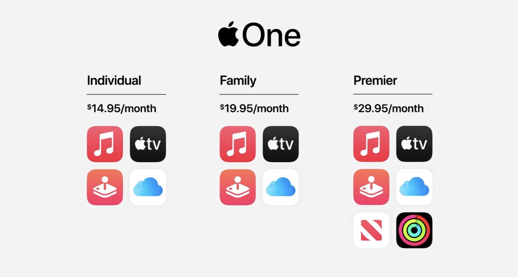애플 원(Apple One)의 요금제는 세 가지입니다.