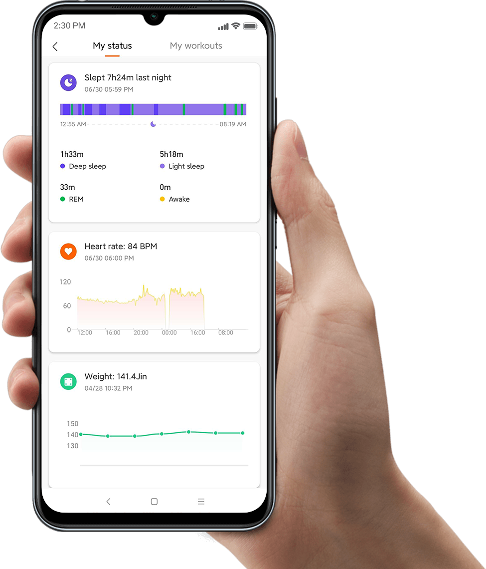 수면은 양도 중요하지만 질도 중요합니다. '미밴드 5'를 이용하면 얼마나 양질의 수면을 취했는지 측정할 수 있습니다.