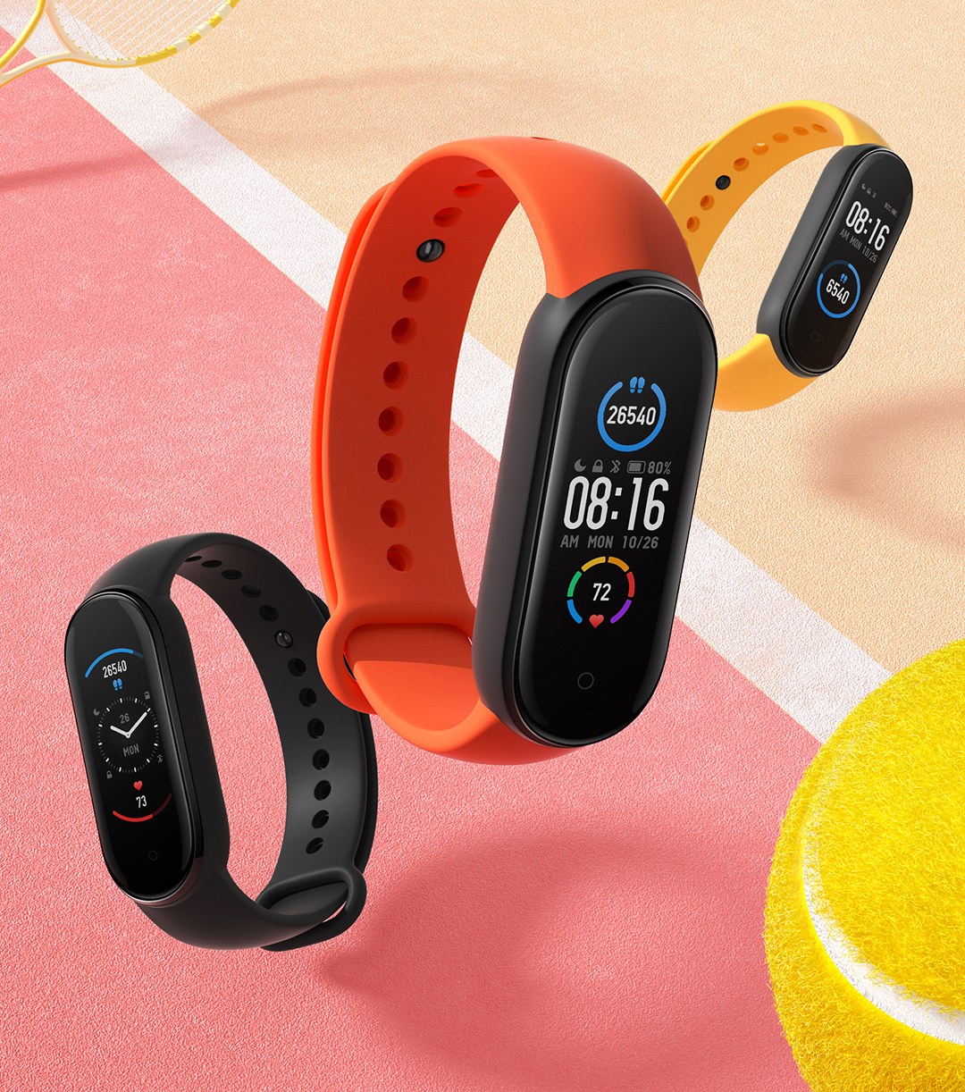 '미밴드 5'의 디스플레이는 전작 대비 20% 넓어진 1.1 인치 아몰레드 디스플레이가 탑재되었습니다. 좀 더 커진 디스플레이를 이용해 발신자, 문자, 알림을 표시합니다. 커스텀 다이얼이 구현되었습니다. 커스텀 컨텐츠의 디스플레이를 지원하여 필요에 따라 다이얼에 즐겨찾기 및 많이 사용하는 기능을 표시할 수 있습니다.