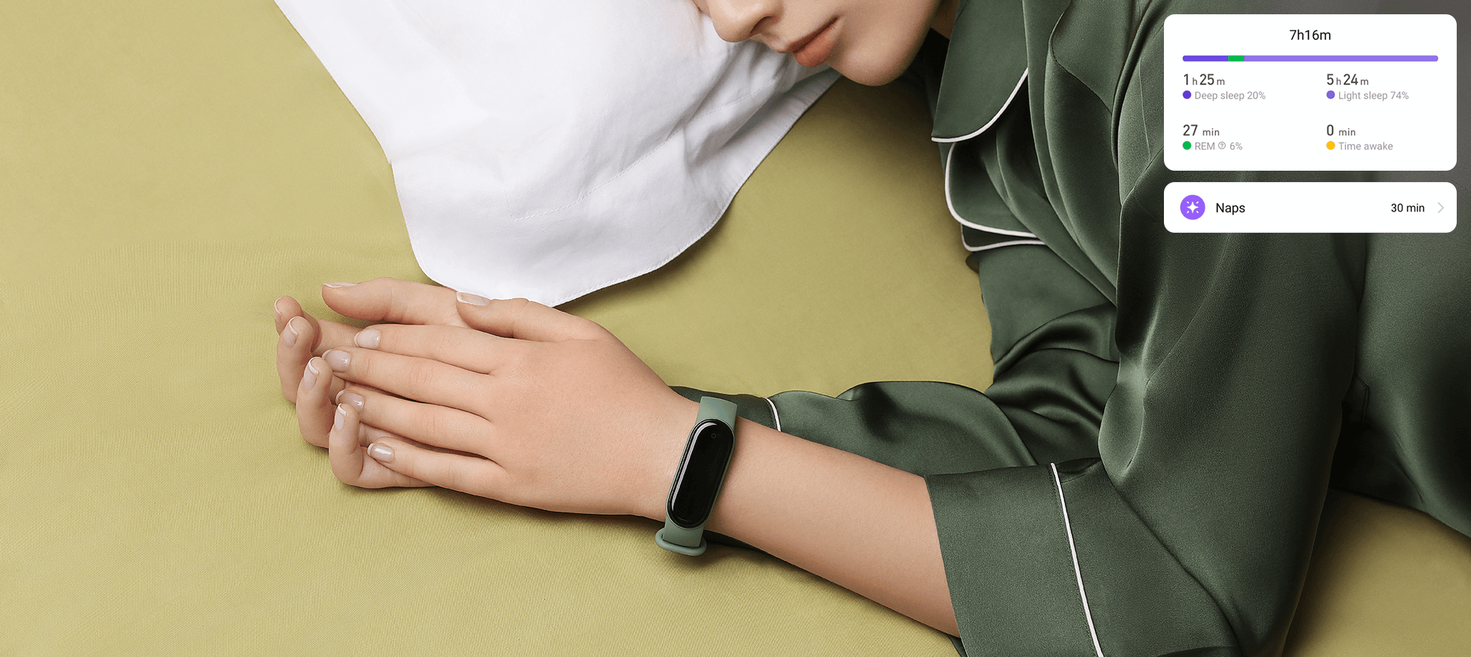 수면은 양도 중요하지만 질도 중요합니다. '미밴드 5'를 이용하면 얼마나 양질의 수면을 취했는지 측정할 수 있습니다.