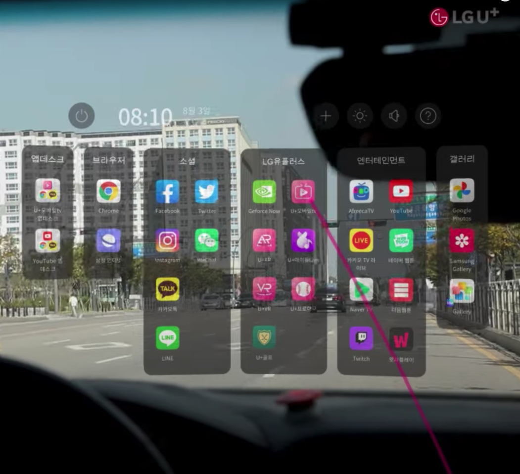 화면의 크기는 최대 100인치 이상 확장할 수 있습니다. 이를 이용해 유튜브 영상을 보는 등 컨텐츠 소비시 몰입감을 높일 수 있습니다. 또 한, 최대 3개의 앱 화면을 동시에 표시할 수도 있습니다. 유플러스의 시연 당시에는 유튜브를 보면서 카톡 창을 이용해 카톡을 하는 동시에 웹 브라우저를 띄워서 웹 서핑을 하는 모습을 보여줬다고 합니다.