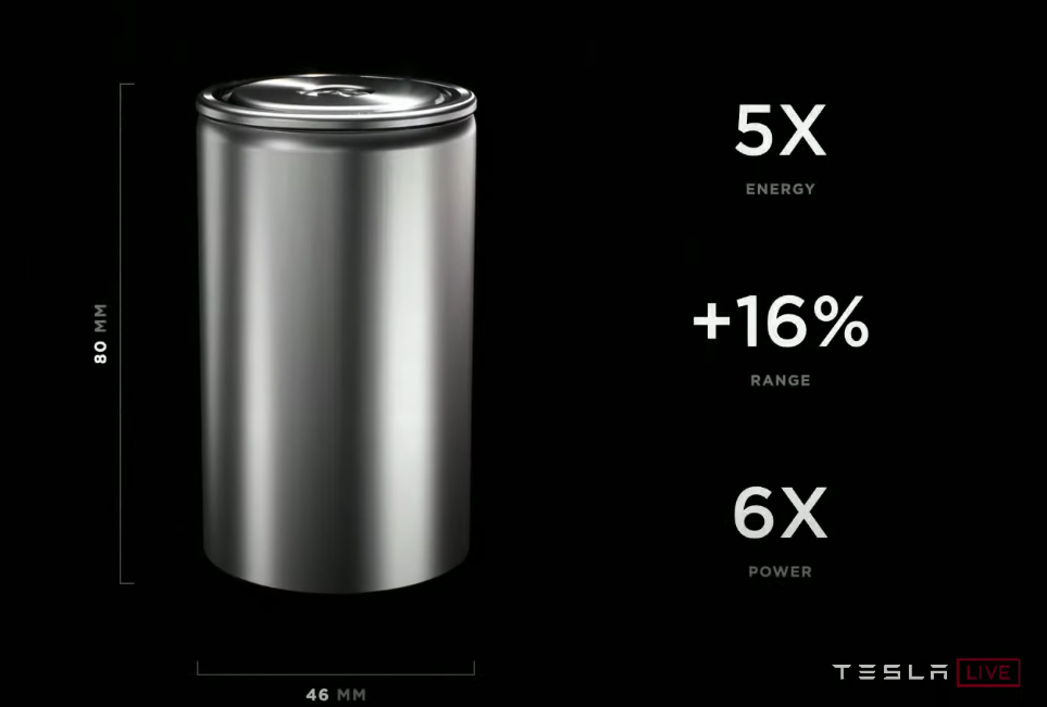 일론 머스크에 의하면 이 배터리를 이용하면 현재 테슬라 전기차에 사용중인 21700배터리와 비교해서 5배 많은 에너지 용량과 6배 높은 출력을 낼 수 있으며, 주행거리도 최대 16%가 늘어난다고 합니다. (에너지 밀도가 높아지는게 아니라 용량이 늘어나는 것으로 해석할 수 있겠습니다.)