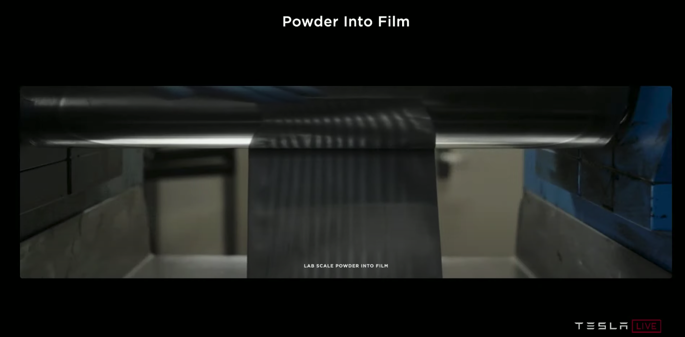 기존에 네 단계로 이뤄지던 습식 공정을 지난해 테슬라가 인수한 '맥스웰 테크놀러지(Maxwell Technologies)'의 건식 전극 도포 공정으로 전환될 것으로 보입니다. 실제 공정에 적용 가능한 수준이 되면 배터리를 생산하는데 필요한 면적과 에너지가 10배 감소한다고 테슬라가 전했습니다. 다만 이 기술은 매우 어려운 기술이며 실제 배터리를 대량생산하기 위해서는 갈길이 멀다고 언급했습니다.