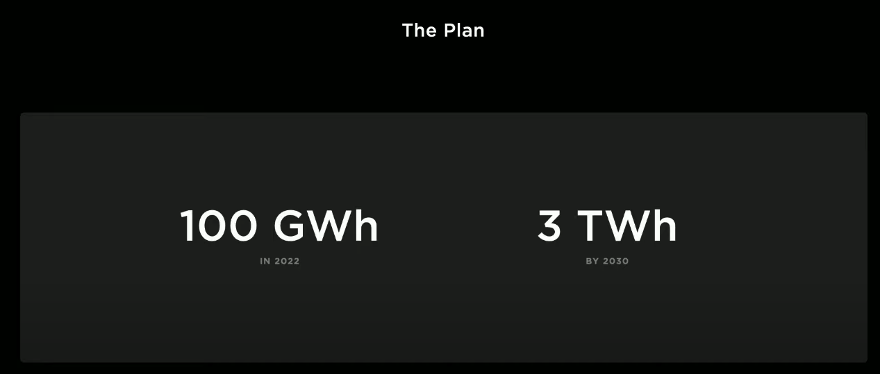 테슬라는 신규로 건설하고 있는 베를린, 텍사스 공장을 더해 2022년까지 배터리 생산량 100GWh를 달성하겠다고 밝혔습니다. 100GWh라는 생산량은 현재 LG화학의 생산량과 비슷한 수준입니다. 2030년까지는 배터리 생산량을 3TWh까지 늘릴 예정이며, 자체 생산한 배터리를 외부에 판매도 할 것이라고 합니다.