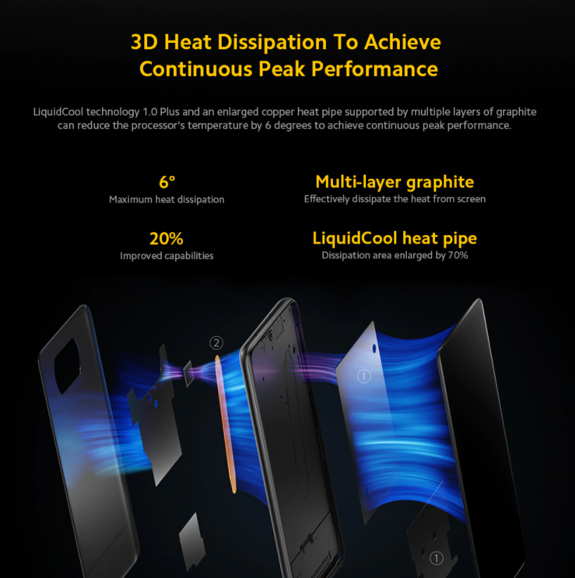 'LiquidCool' 기술이 적용되어 프로세서에서 발생하는 열을 6도나 감소 시켜줍니다. 빡세게 프로세서를 사용하는 게임 플레이시 효과적인 쿨링을 할 수 있습니다. 플래그십은 아니지만 저가형 게임폰으로 사용하기 무난한 것 같습니다.