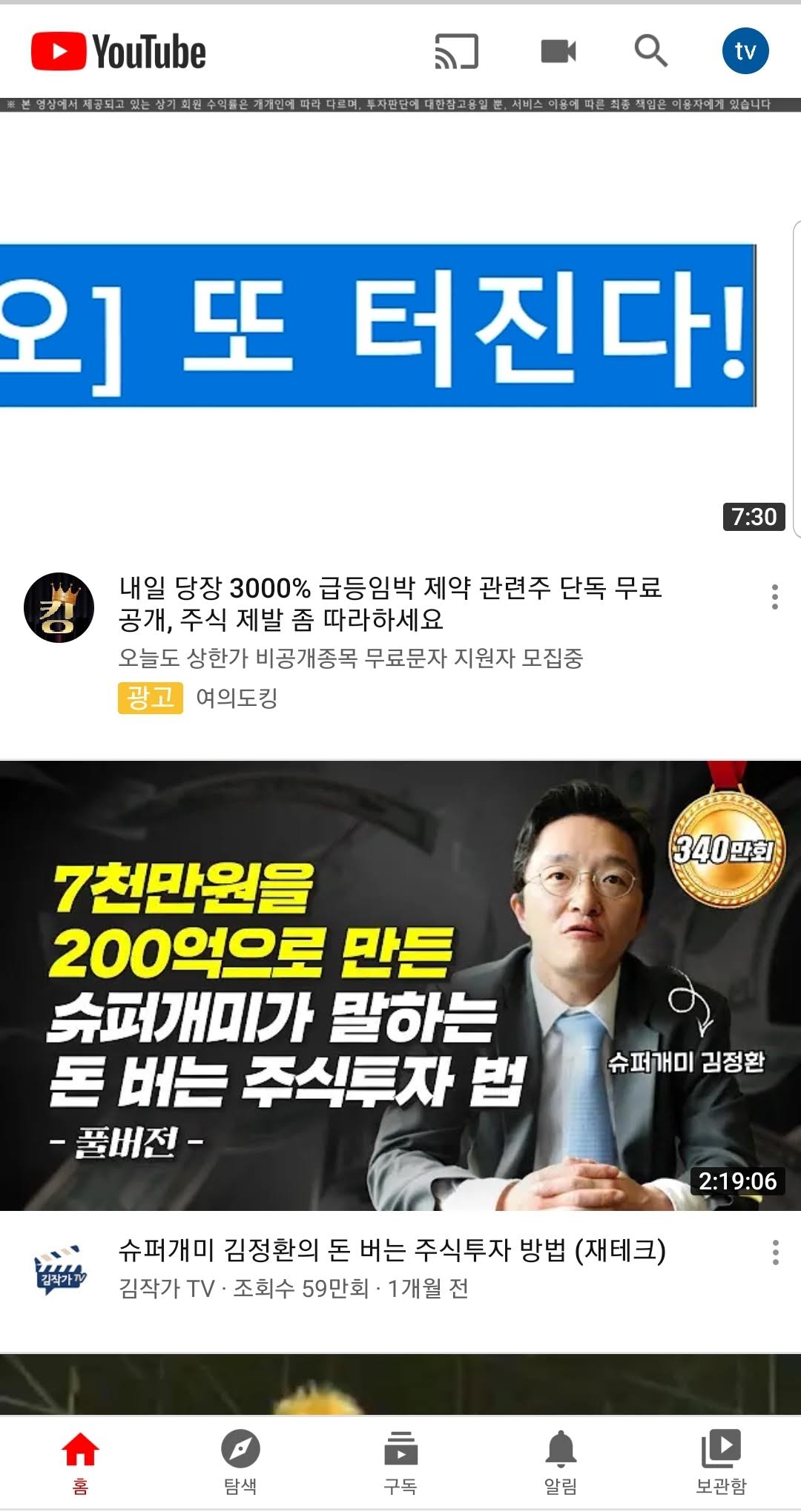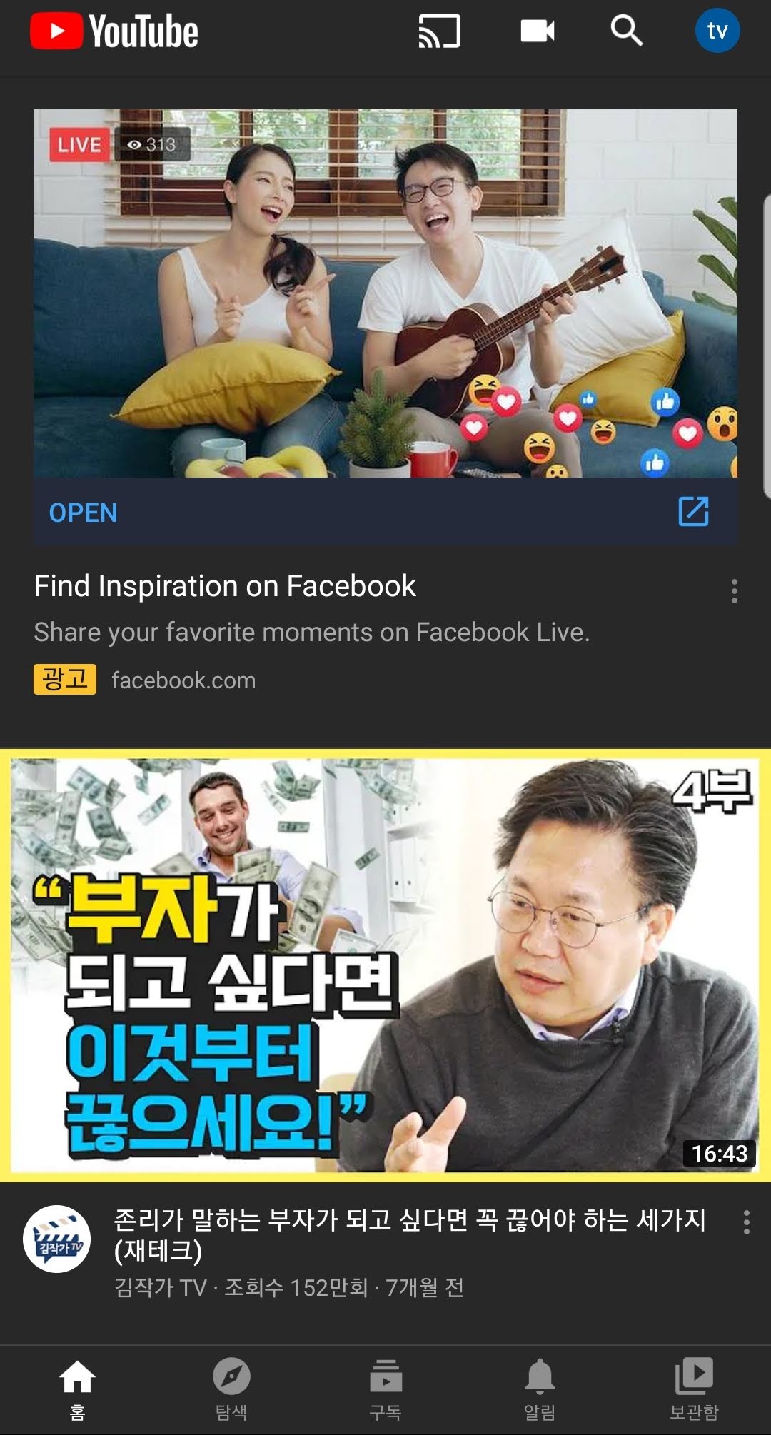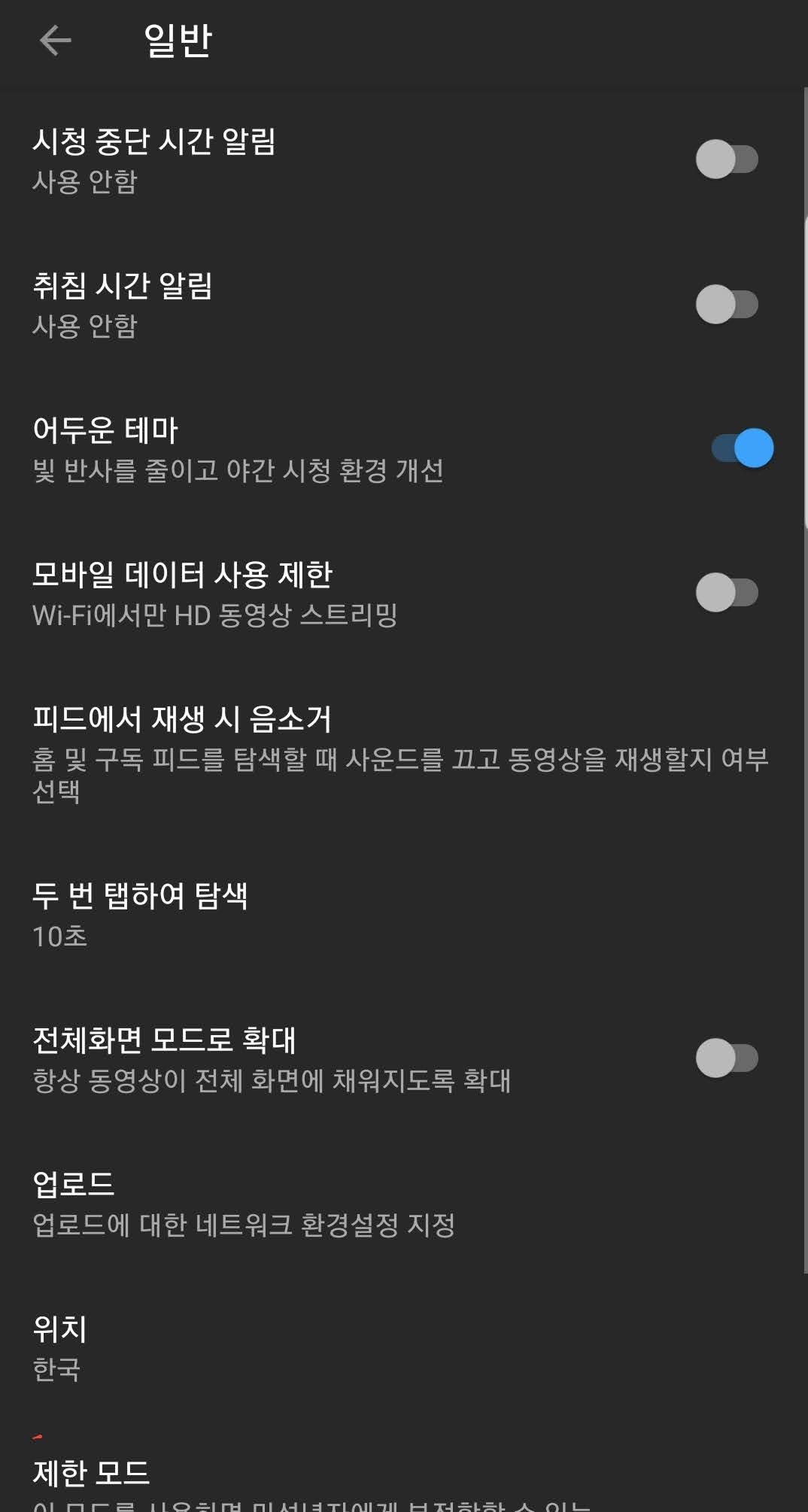 다른 앱들은 다크모드를 지원하지만 어색한 경우가 많은데, 유튜브는 다크모드도 어색함없이 잘 지원되는 것 같습니다.