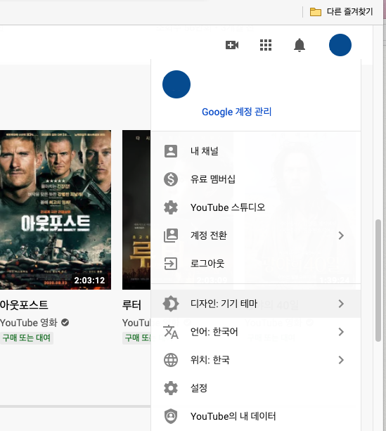 유튜브 PC 사이트 다크모드 설정 방법