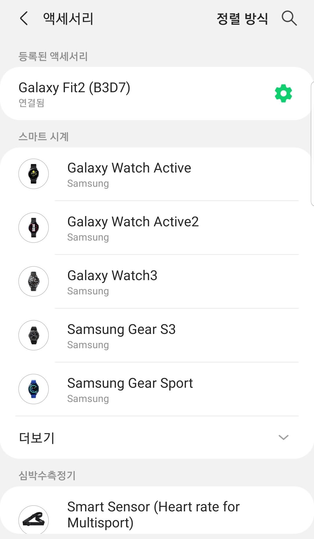 맨 위에 등록된 액세서리 항목에 'Galaxy Fit2'를 확인할 수 있습니다.