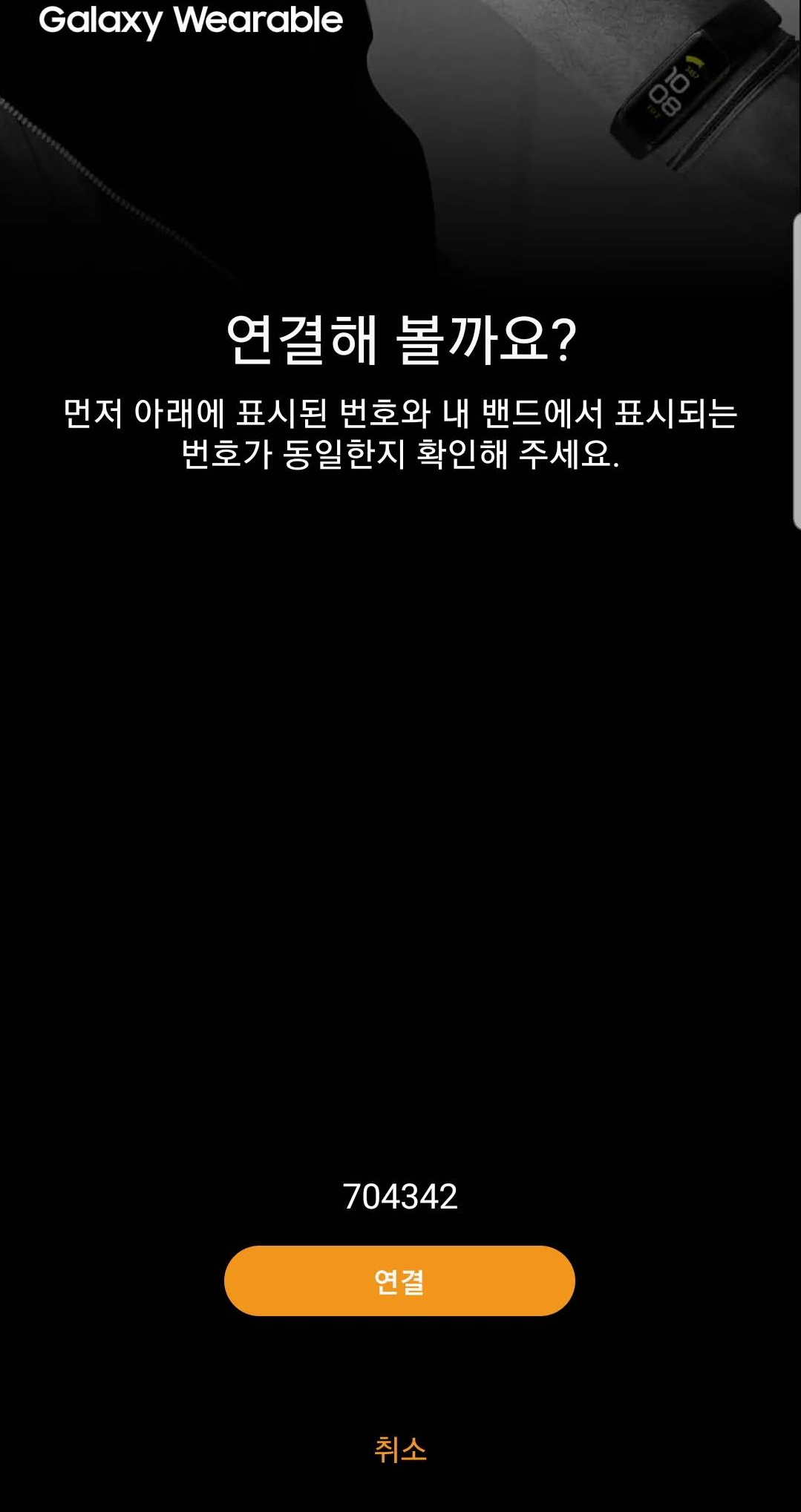 우선 사용하고 있는 스마트폰에 'Galaxy Wearable' 앱을 설치합니다. 설치 한 다음 '갤럭시 핏2' 제품을 사용하고 있는 스마트폰에 가까이 가져가면 연동 절차가 시작됩니다. (아이폰도 동일하게 되는지는 모르겠습니다.)