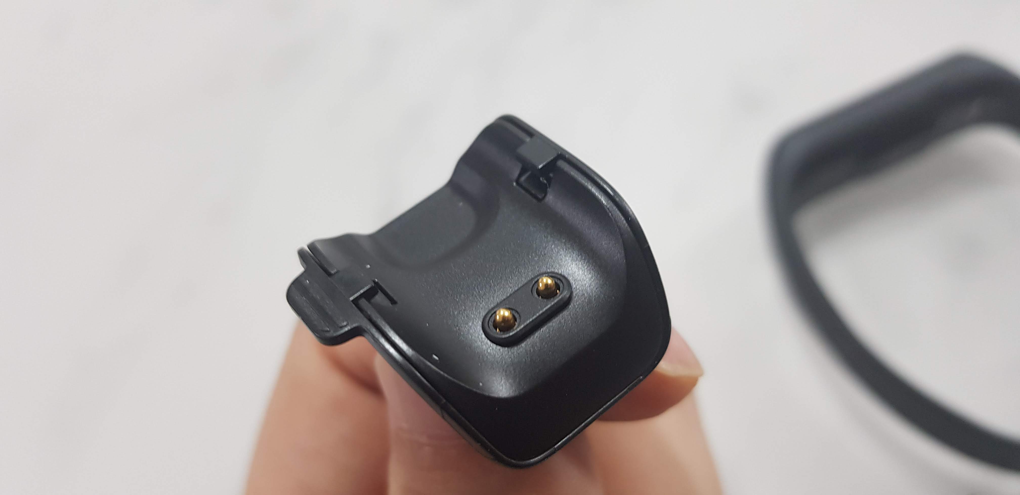 '갤럭시핏2'를 위한 충전기입니다. 금색의 충전 단자를 이용한 충전기입니다.