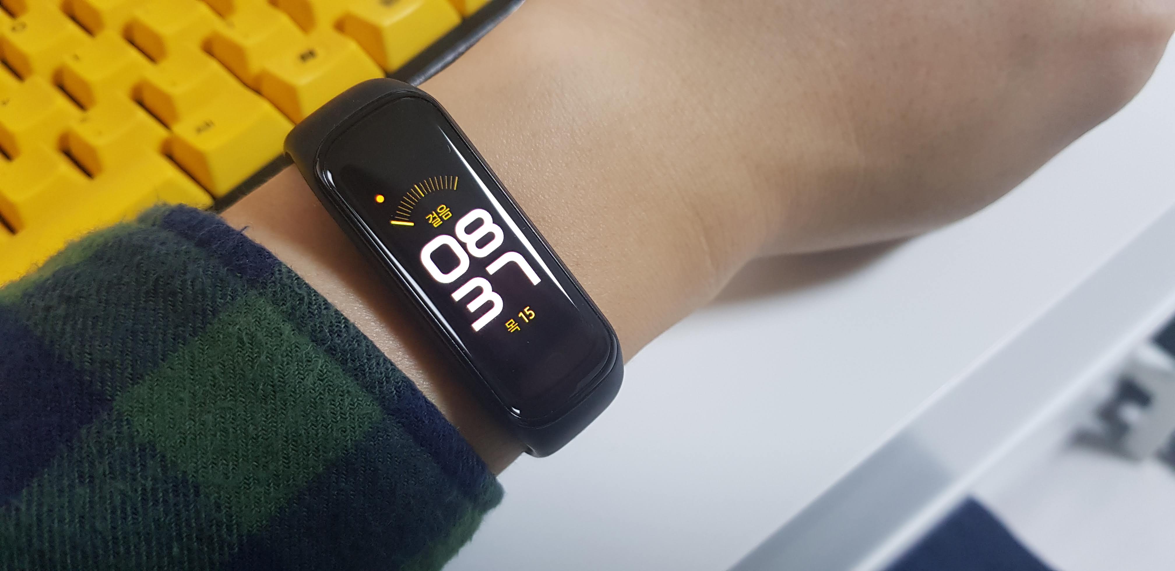손목에 착용하고 손목을 살짝 비틀어보면 화면이 활성화되는 것을 볼 수 있습니다.