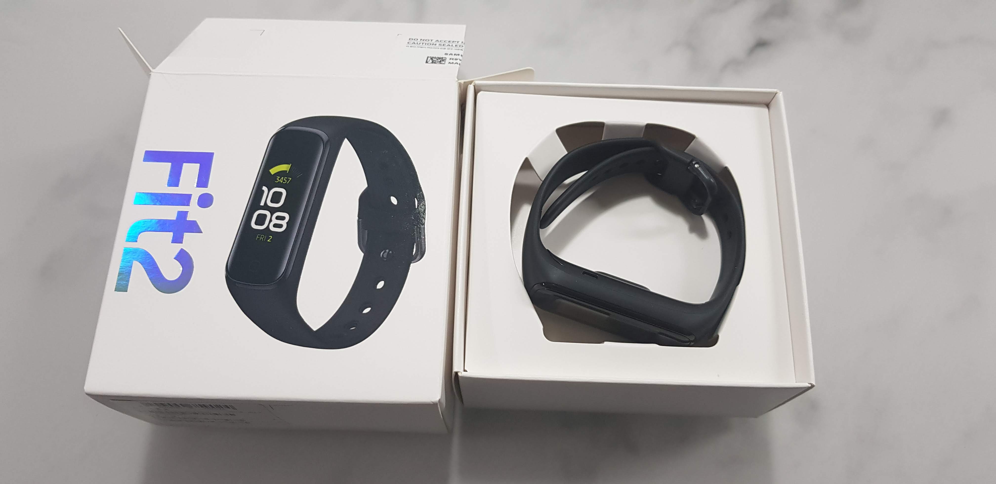 '갤럭시핏2' 박스에는 제품의 외관이 프린팅되어 있습니다. 레드 컬러와 블랙 컬러가 출시되었는데, 레드 컬러가 일시 품절 상태이기도 했고, 제가 사용하기에 더 괜찮은 것 같아서 블랙컬러를 선택하게 되었습니다.