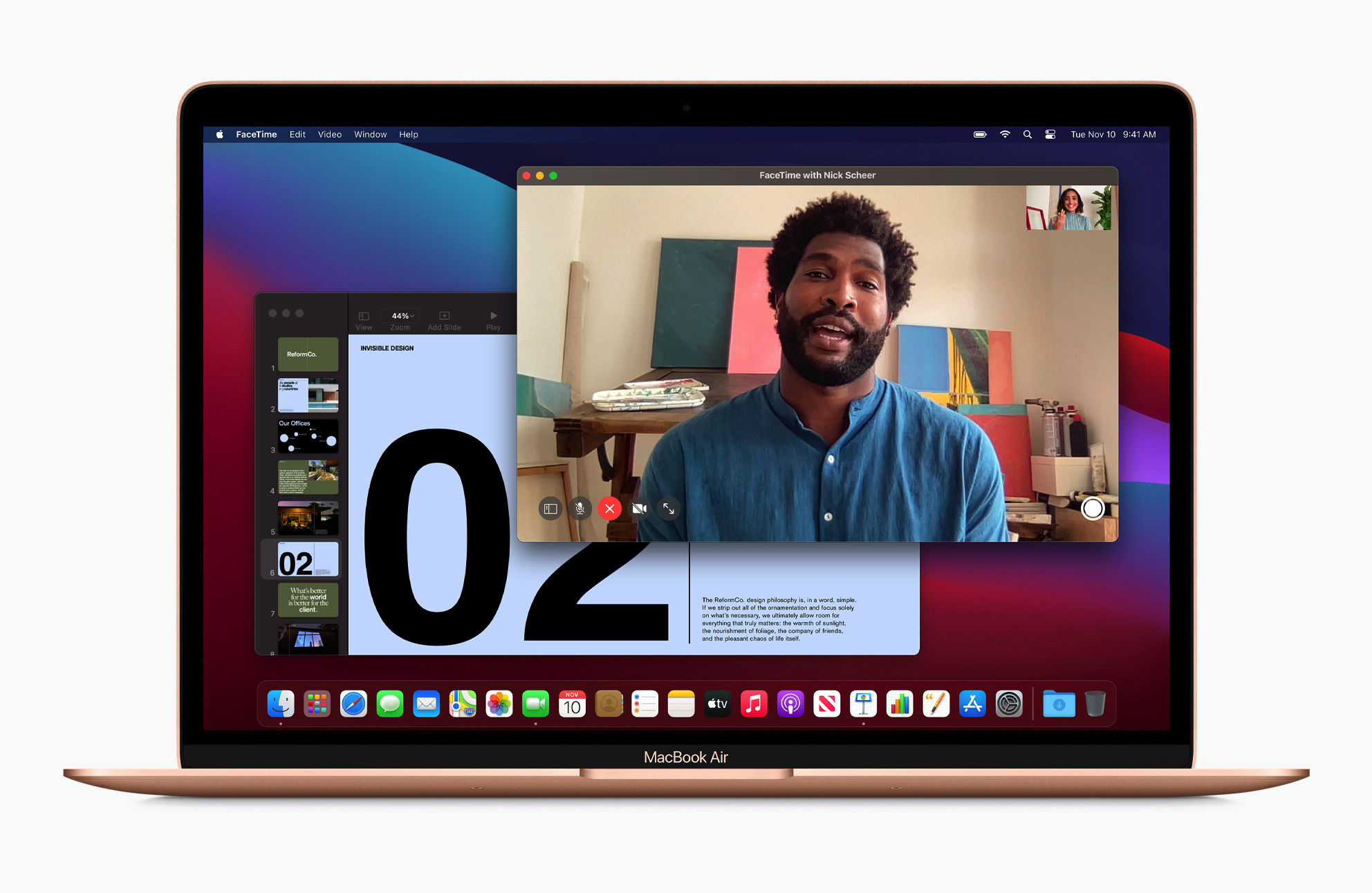 COVID-19의 확산으로 원격 근무가 늘어나면서 화상회의나 영상통화가 늘어났는데요. M1 칩의 '이미지 신호 프로세서(ISP, Image Signal Processor)'와 향상된 머신러닝으로 카메라 화질이나 마이크 음질을 최적화 할 수 있습니다.
