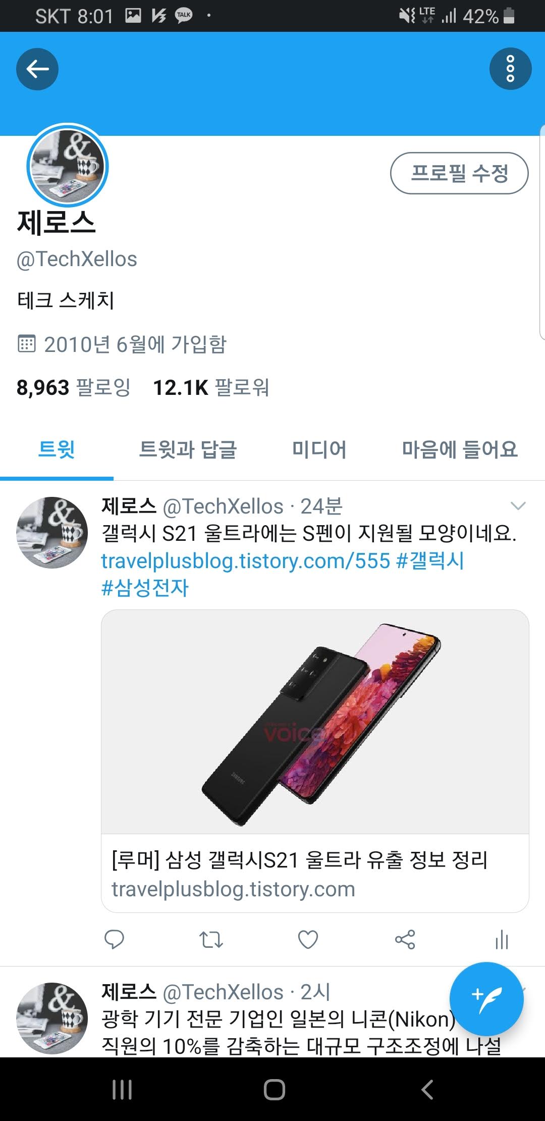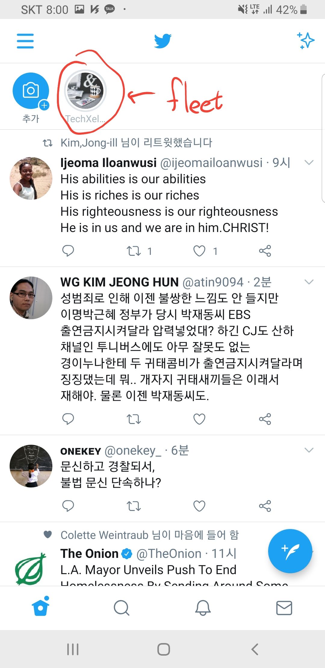 트위터의 새로운 기능 '플릿(Fleets)'을 사용해보겠습니다. 트위터의 플릿은 PC 버전 혹은 웹 브라우저에서는 사용할 수 없고 안드로이드와 iOS의 트위터 앱을 통해 사용할 수 있습니다.