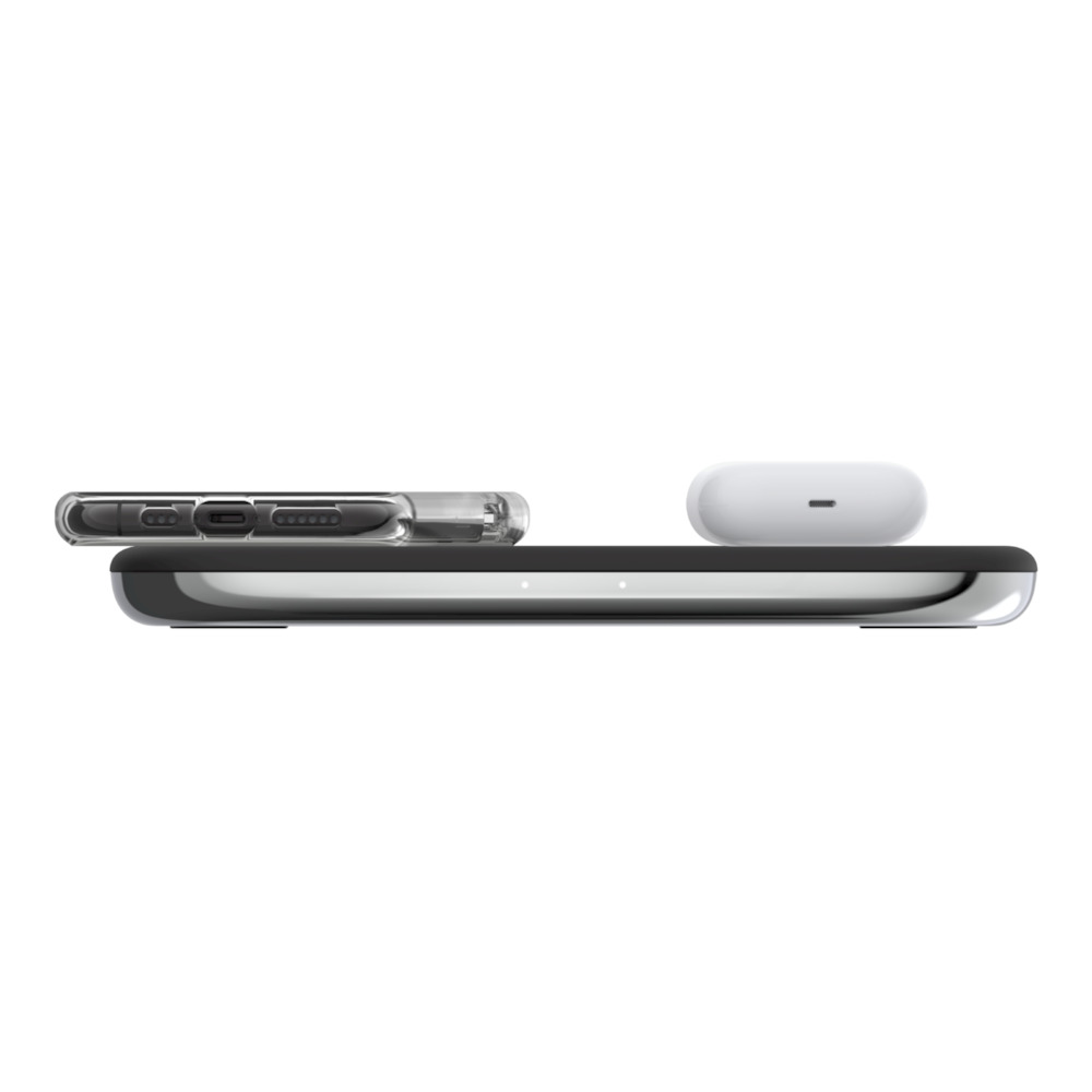 벨킨의 'Boost Charge TrueFreedom Pro' 무선 충전기는 Qi 표준을 지원하는 스마트폰이나 이어폰 2개를 동시에 충전할 수 있습니다. 두 개의 기기를 각각 10W 정도의 출력으로 무선충전 시킵니다. 영상을 보면 신중하게 위치를 맞춰서 디바이스를 올려두는게 아닌 무심한듯 시크하게 툭 올려놓습니다. 그래도 충전을 잘 됩니다.
