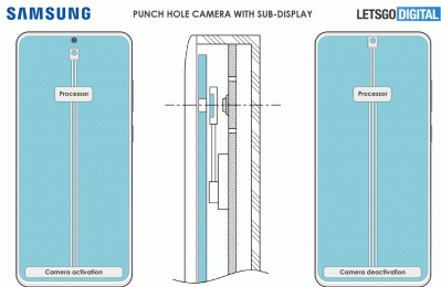 'LETSGO DIGITAL' 등 주요 외신에 따르면 삼성전자가 "서브 디스플레이 및 작동 방법을 포함한 전자 장비"라는 이름의 특허를 신청했다고 합니다. 이 특허에 기술된 내용을 보면, 위아래로 움직이는 '내부 팝업 디스플레이'가 적용되어 사용 중이 아닌 셀피 카메라를 덮고 있는 형태입니다.