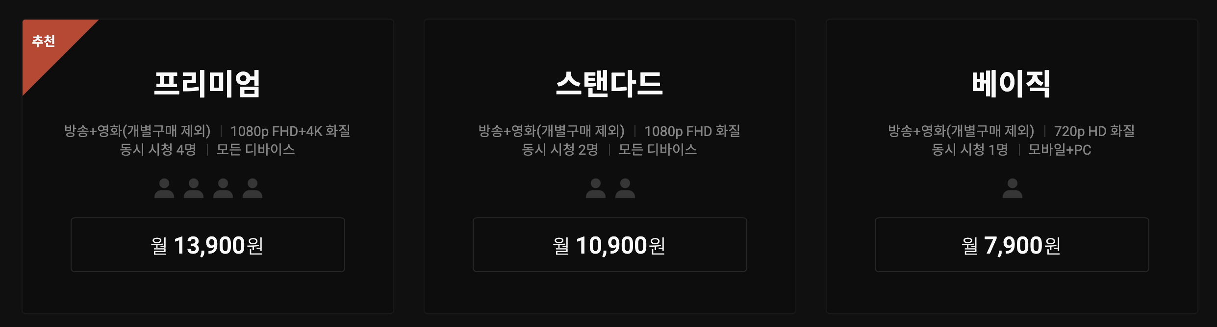 티빙의 구독 이용권은 프리미엄으로 갈 수록 화질이 높아집니다.
