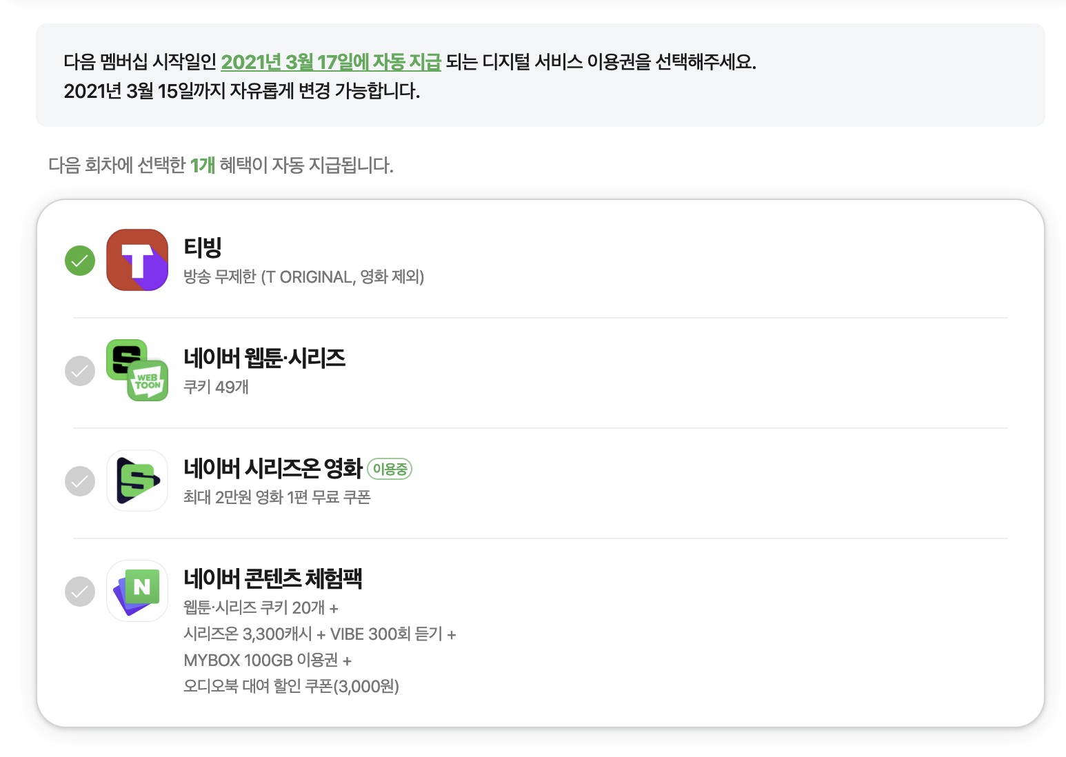 3월 4일 네이버는 '네이버 플러스 멤버십'에 티빙 방송 무제한 이용권을 추가했습니다.