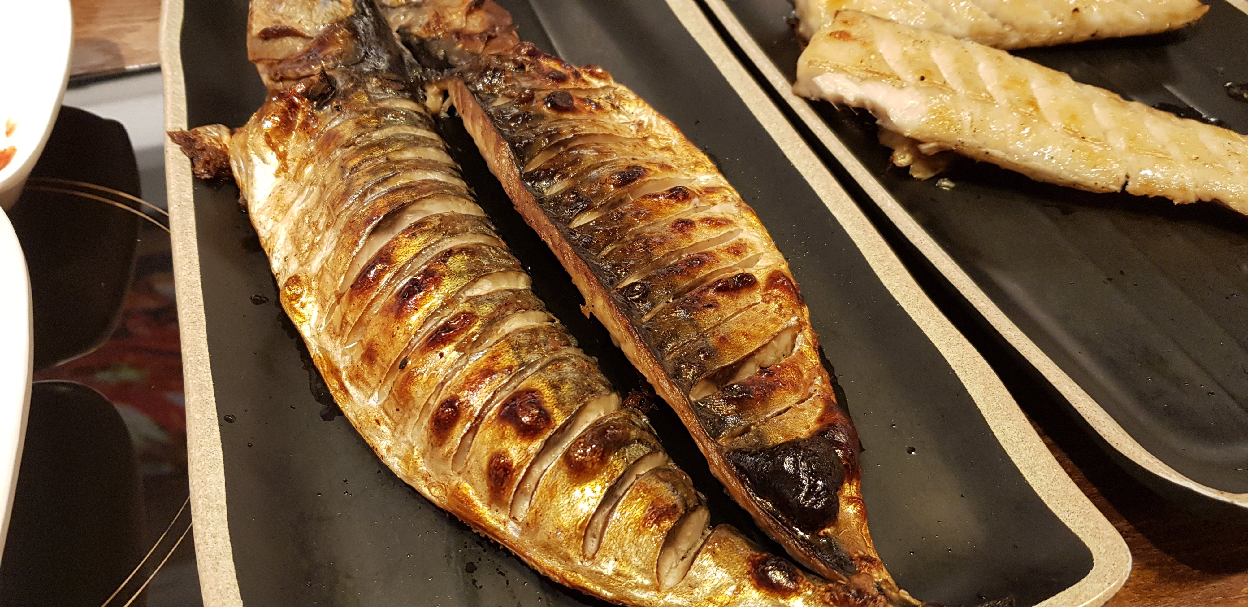 반찬을 조금씩 맛보며 이야기를 나누다보니 메인 메뉴인 생선 구이가 나왔습니다. 왼쪽이 고등어구이, 오른쪽이 갈치구이입니다.